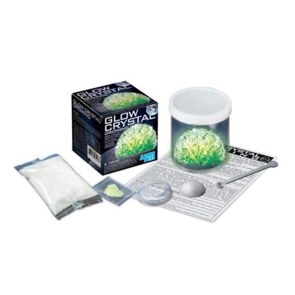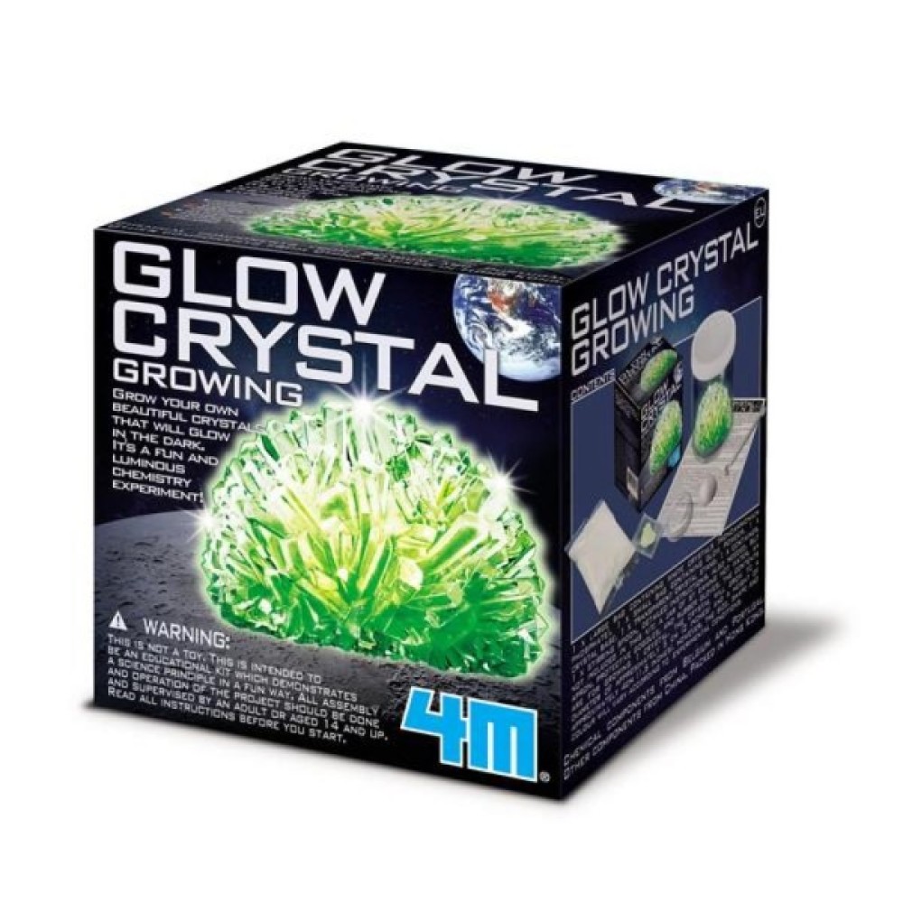 Хочете виростити власні чарівні кристали, які будуть світитися в темряві? Завдяки набору для досліджень від 4M з води, білого порошку і світної пудри можна створити красиві кристали з гострими гранями та унікальною формою.