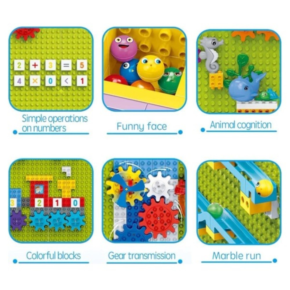 Завдяки 323 деталям з яскравого, екологічно чистого пластику, набір захоплює увагу ідеальною комбінацією кольорів. Він сприяє розвитку просторового мислення, навчає розпізнавати форми і мотивує до експериментів. Деталі досить великі, що робить їх безпечними для малюків, проте не рекомендується використовувати дітям молодше 3 років.