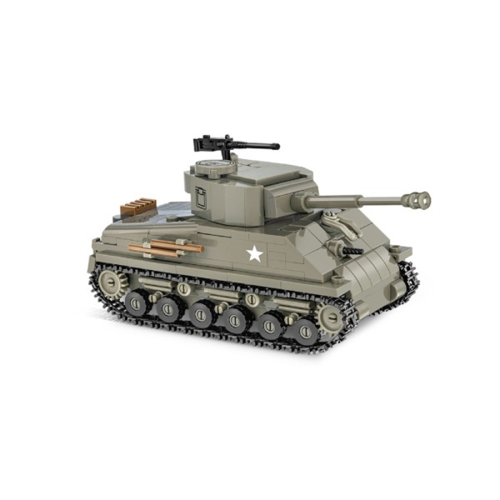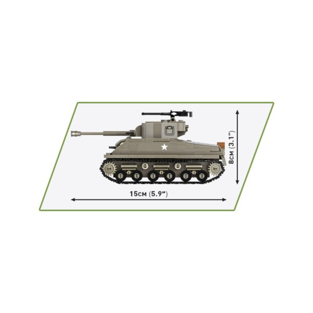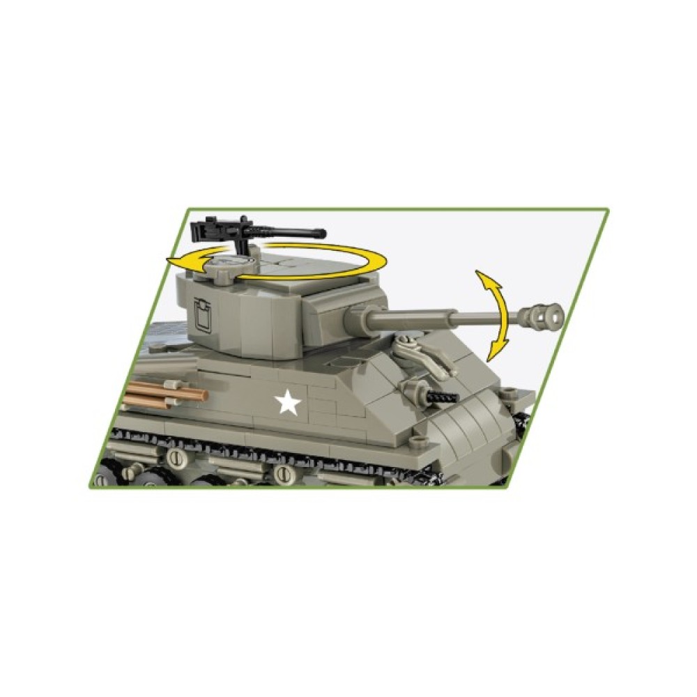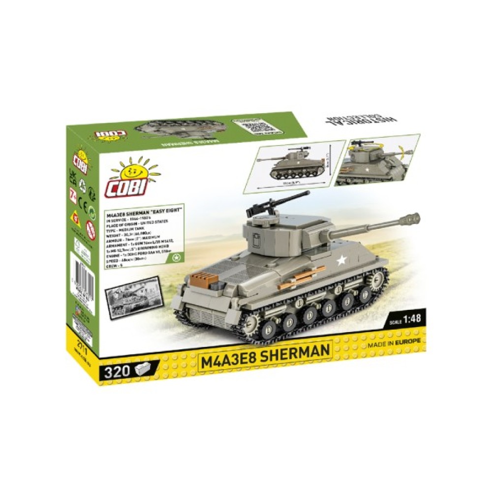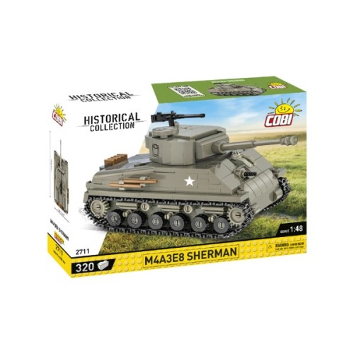Модель заснована на легендарному американському танку M4A3E8 Sherman, який брав активну участь у бойових діях кінця Другої світової війни та під час Корейської війни. Відомий як "Easy-Eight" або "E8", цей танк відзначався підвищеною швидкістю та покращеною бронею. Особливості конструктора COBI, виготовленого з якісного пластику, включають рухому гармату, обертову башту та реалістичні гусениці, що привертають увагу до його майстерності виконання.