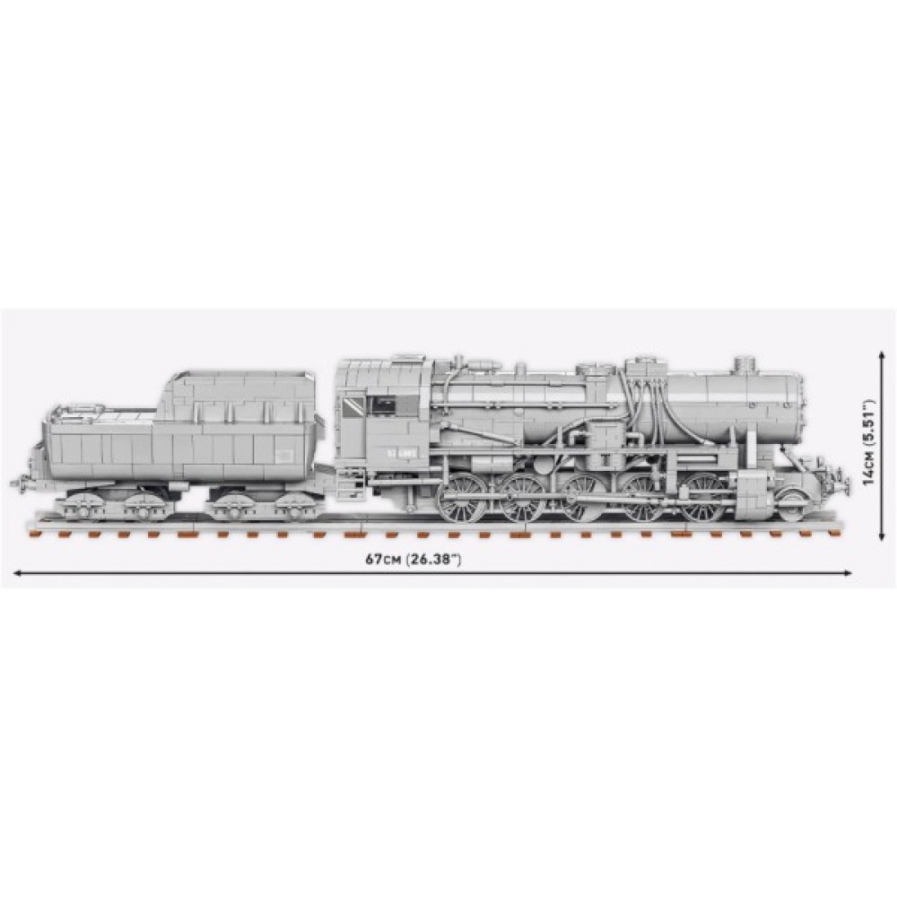 Конструктор Cobi Локомотив Kriegslokomotive Class 52 масштабу 1:35 запрошує у світ історії за допомогою 2476 якісних пластикових деталей. Цей унікальний блоковий конструктор відтворює видатний німецький паровий локомотив часів Другої світової війни, відомий своїм складним та надійним дизайном. Для хлопчиків віком від 10 років цей набір стане захопливим викликом та захопливою подорожжю у минуле.
