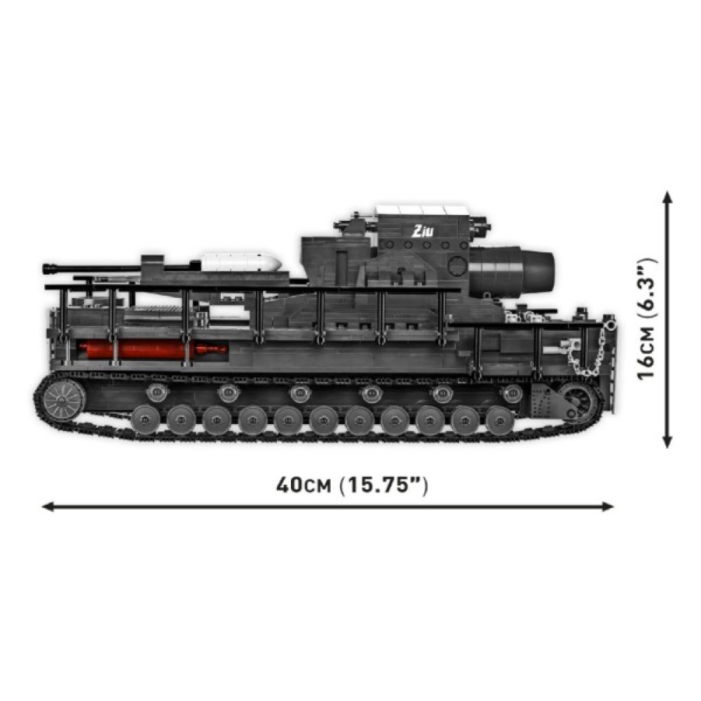 Цей військовий набір із серії Cobi World War 2 складається з 1574 високоякісних пластикових деталей, що забезпечують чудову деталізацію моделі в масштабі 1:28. Завдяки увазі до деталей, модель оснащена багатьма рухомими елементами, такими як робочі гусениці, рухомий ствол і система заряджання, що робить її максимально реалістичною.