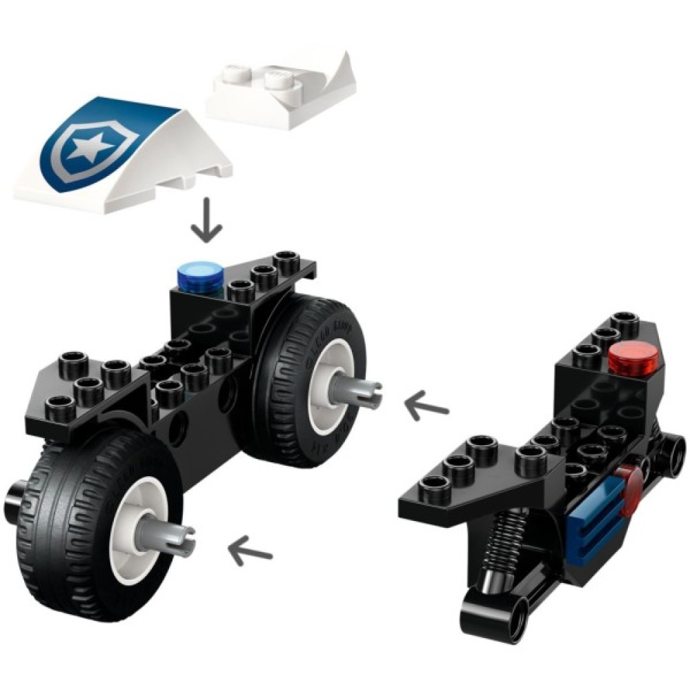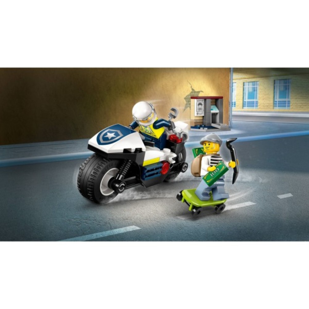 Відкрийте нові горизонти творчих можливостей із серією LEGO City, що пропонує зібрати стильний поліцейський мотоцикл з широкими колесами для напружених погонь. Відчуйте себе героєм, виконуючи завдання поліцейського або тікайте на скейтборді як хитрий злодій. Унікальною особливістю є наявність мінібанкомата з іграшковою банкнотою, що додає інтриги у кожну гру.