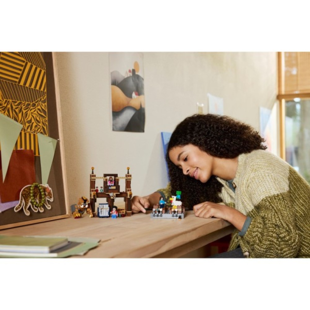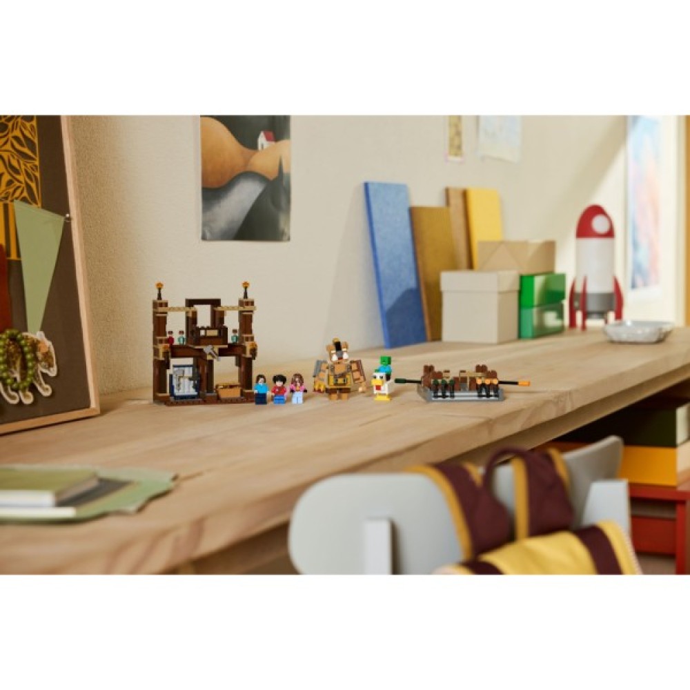 Цей захоплюючий набор включає 491 деталь і пропонує унікальних персонажів, таких як Стів, Гаррет, Генрі, дитячий зомбі, жокей-курку та великий рухливий кабан. Разом із ними йдуть різноманітні аксесуари для рольових ігор: зброя, зілля та інші інтерактивні елементи, які відкривають безмежні можливості для творчості.