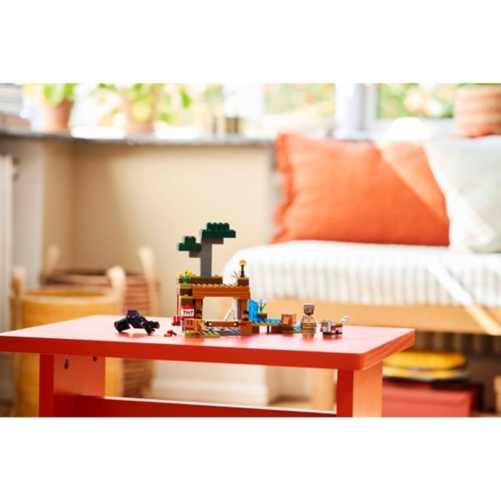 Набір відтворює саванний біом з інтригуючою шахтою, де юні будівельники можуть зануритися в пошуки дорогоцінної руди. Натисканням важеля активуйте ефектний "вибух", відкриваючи приховані скарби. Персонажі, такі як печерний павук, вовк і два броненосці, додають ще більше драйву, перетворюючи кожну гру в справжню пригоду.