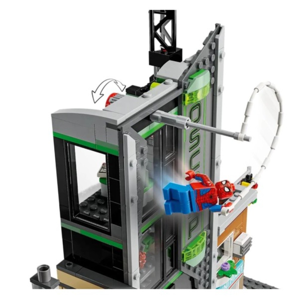 Кожна з цих будівель наповнена деталями та аксесуарами, що додають реалістичності ігрі. Оснащені прозорими паличками, фігурки легко встановлюються у динамічні пози, відтворюючи захоплюючі сцени з життя супергероїв. Вісім мініфігурок — серед яких Людина-павук, Жінка-павук і Зелений гоблін — гарантують безперервну гру з павутинням.