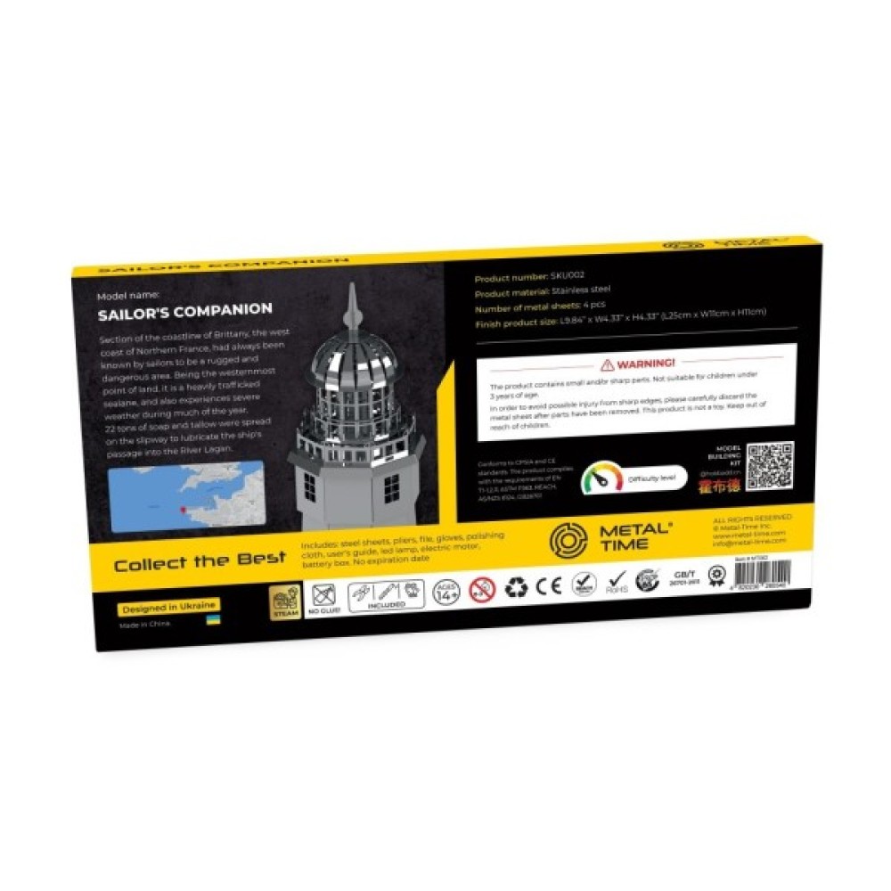 Конструктор Metal Time Sailor's Companion (MT002) — це витончена можливість власноруч створити мальовничий 3D-модель знаменитого маяка Ля-Жюм'єн, що стане неоціненним досвідом для юних творців від 14 років. Виготовлене з високоякісної сталі AISI 304, це диво інженерії гарантує не лише вражаючу довговічність та безпеку, але й чудовий естетичний вигляд завдяки своїм гіпоалергенним властивостям.