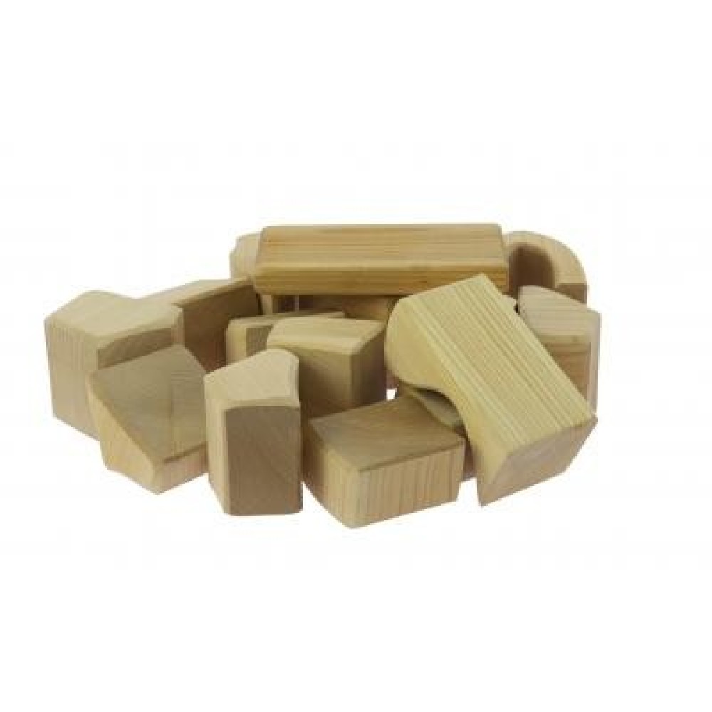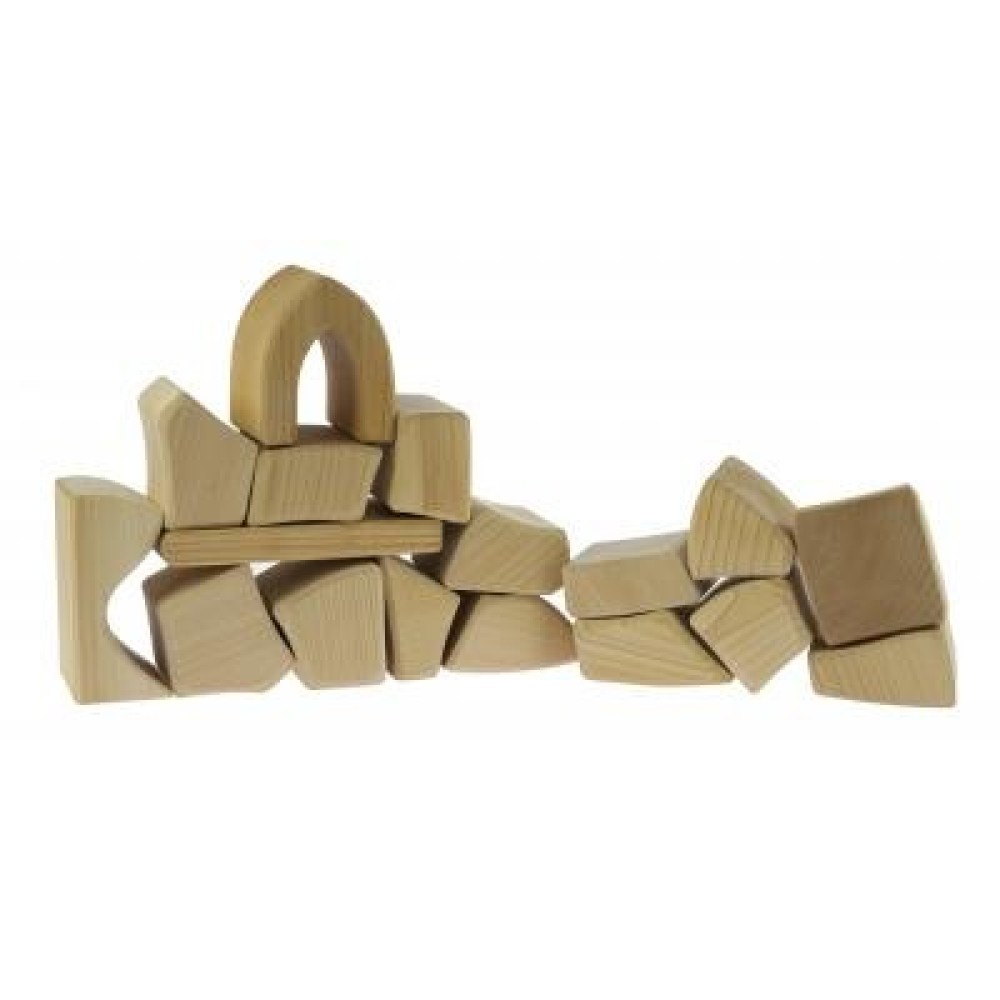 Конструктор складається з 17 великих блоків оригінальних форм, виготовлених з натурального дерева. Використаний матеріал, здається, зберігає в собі тепло та енергію природи, завдяки чому елементи конструктора приємні на дотик і дарують відчуття спокою. Деревина ретельно оброблена, що гарантує безпеку під час гри. Блоки хоча і масивні, але дуже легкі, що робить їх зручними для юних будівельників.