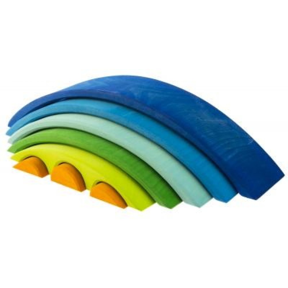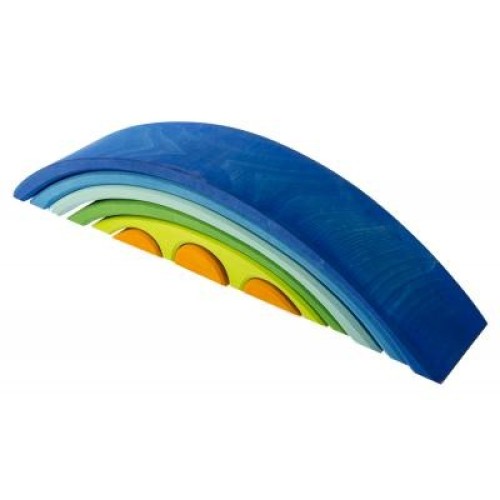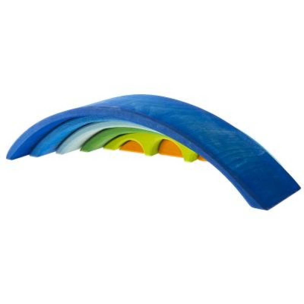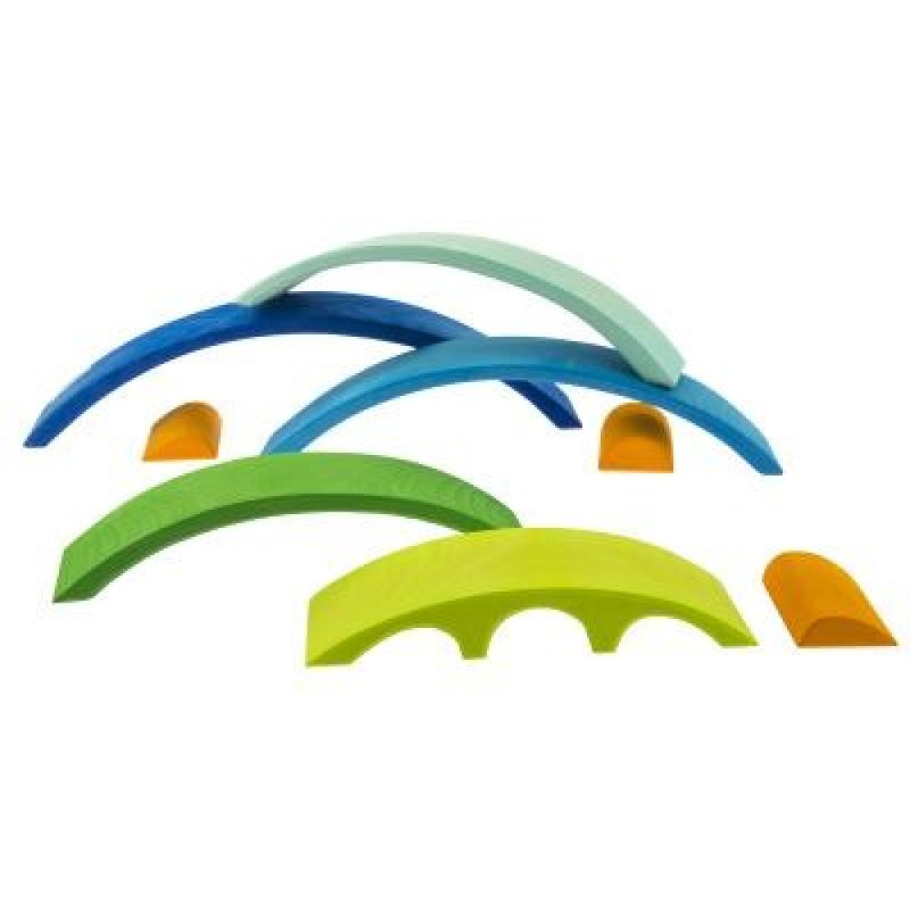 До складу набору входять 8 дерев’яних дугоподібних форм, які легко з’єднуються, утворюючи казковий міст. Найбільша дуга має довжину 39 см, ширину 7 см, що надає масу можливостей для створення різних конструкцій. Загальна висота зібраного мосту складає 8 см, що робить його компактним і зручним для гри вдома.