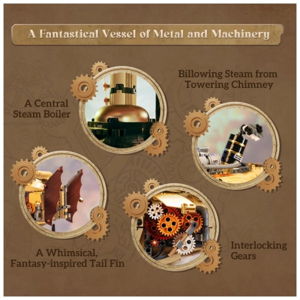 Конструктор сумісний з іншими популярними аналогами, що відкриває безмежні горизонти для нових ідей. Унікальна естетика Steampunk декоративно прикрасить інтер'єр, ставши відмінним акцентом у кімнаті або офісі та привертаючи увагу гостей. Оберіть якість, надійність та натхнення разом з Pantasy Original.
