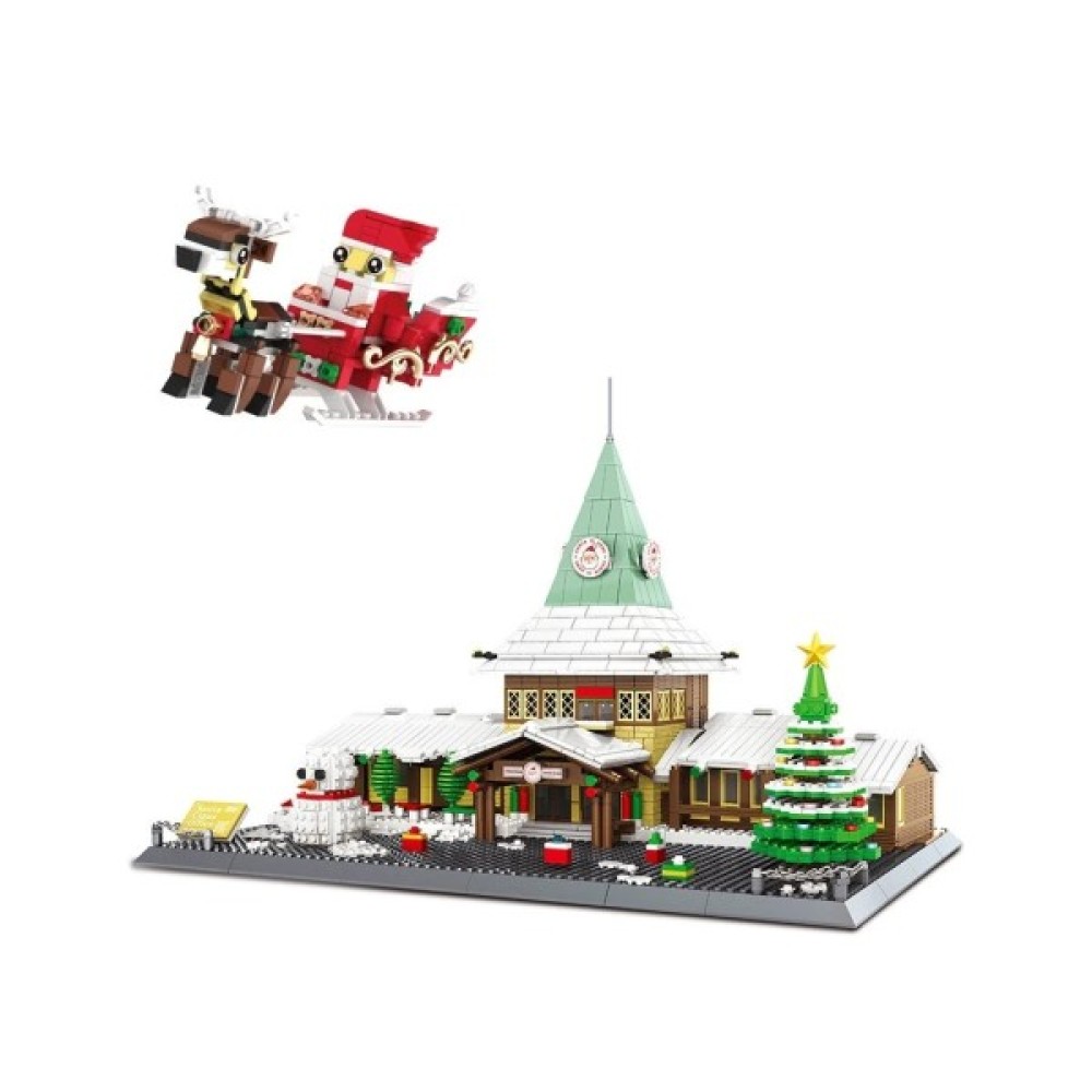 Модель представляє собою розкішну резиденцію з центральною двоповерховою вежею, прикрашеною символічними зображеннями Санта Клауса. Територія офісу особливо святково оформлена: новорічна ялинка, величезний сніговик, червоні коробки з подарунками. Головний герой свята, Санта Клаус, також присутній у наборі разом з північним оленем у санях, повних подарунків.