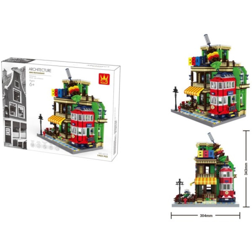Конструктор Wange Ресторан Барбекю (WNG-6313) — це справжній витвір мистецтва з елементами архітектури, який здатний перенести дітей у світ неймовірних кулінарних та архітектурних пригод. Цей блоковий конструктор містить 1922 деталі, виконані з високоякісного пластику, що гарантує його довговічність і безпечність. Мініатюрна багатоповерхова будівля ресторану BBQ вразить яскравою кольоровою гамою та деталізацією, включаючи величезні букви BBQ і декор у вигляді шампура.