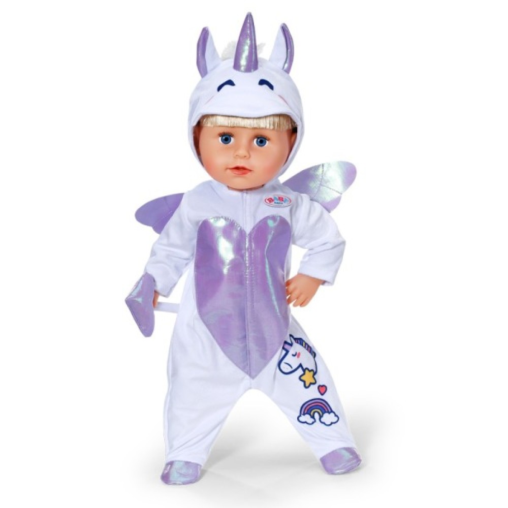 Після ванни BABY born потрібен теплий і комфортний костюмчик, який захистить дитину від протягів. А милий комбінезончик єдинорога, крила і хвостик, а також смішні вушка зроблять BABY born дуже стильною. Одяг виготовлено з високоякісних матеріалів.