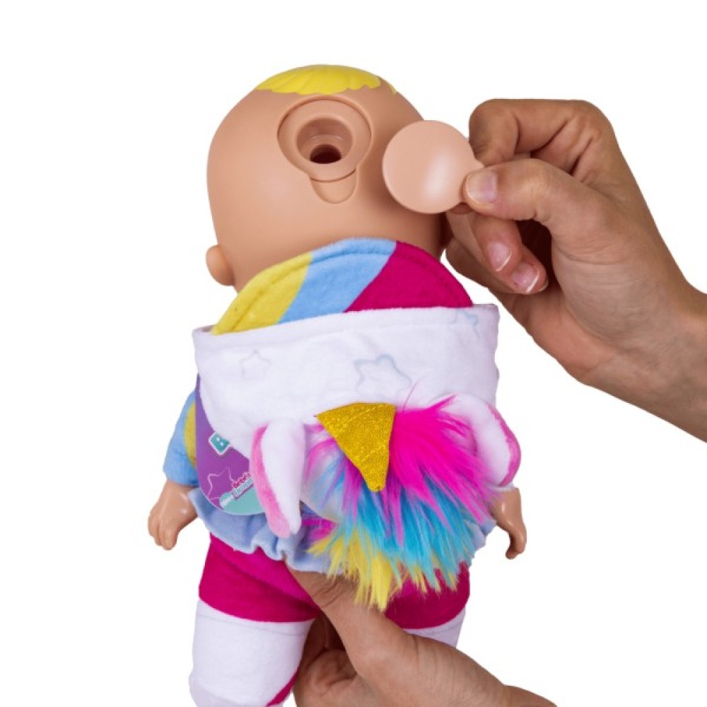 Вони плачуть справжніми сльозами. Заповніть резервуар водою (в голові ляльки). Потім натисніть на голову ляльки, щоб вона почала плакати.