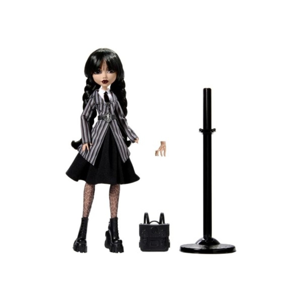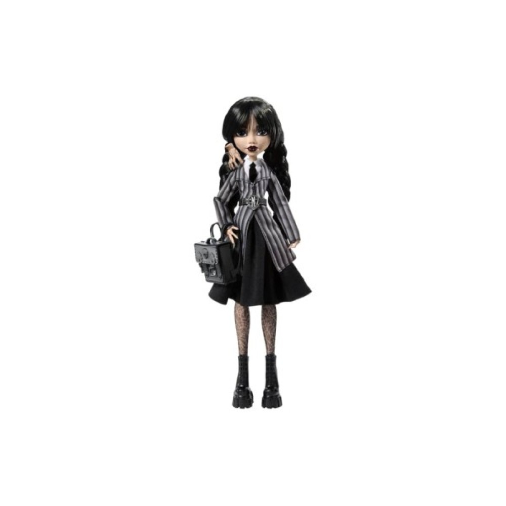 Колекція Monster High x Wednesday віддає данину похмурому дотепному та відверто моторошному телесеріалу з лінійкою ляльок Screamium. Вражаюче бачення у її фірмовому чорному кольорі, ця середа лялька Аддамс переосмислює головну героїню серіалу та її культовий готичний стиль через призму Monster High.