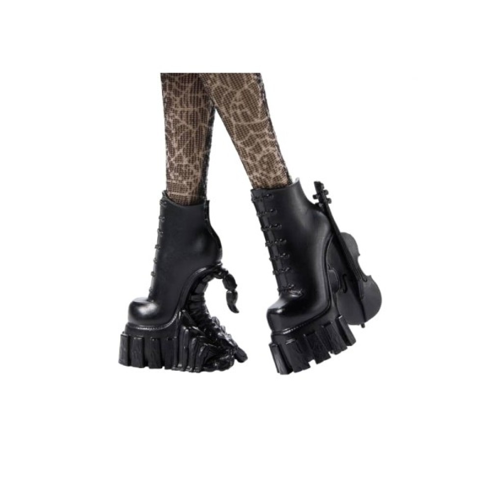 - На масивних черевиках на платформі на одному каблуку зображено її віолончель, а на іншому — її улюблений скорпіон Неро.