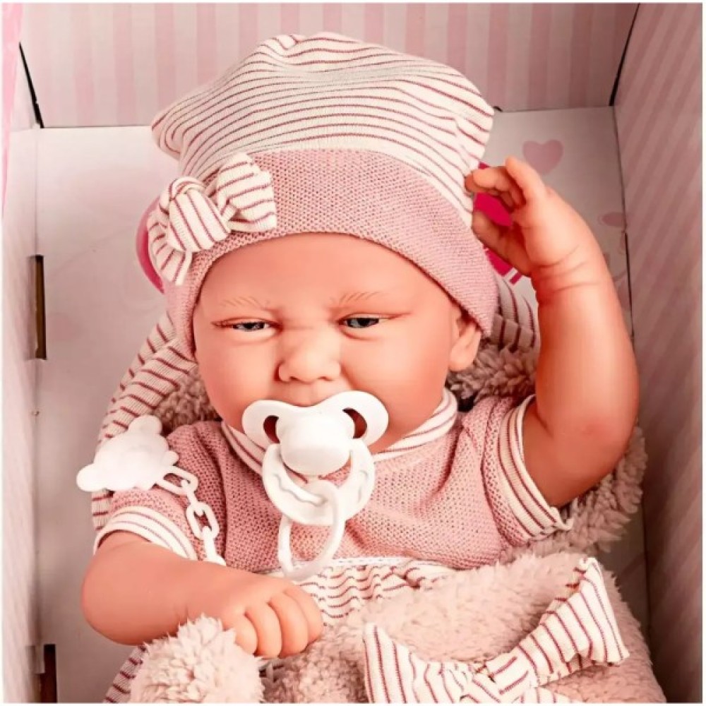 Зустрічайте Карлу — витончену ляльку ручної роботи від відомого іспанського бренду Antonio Juan. Цей пупс створений, щоб дарувати тепло та радість, а також розвивати у дітей почуття турботи та відповідальності. Карла має повністю вінілове тіло з реалістичними складками та детальним зображенням статі, що робить її неймовірно схожою на справжню дитину. Виготовлена зі спеціального пом'якшеного вінілу, вона дуже приємна на дотик, і її не хочеться випускати з рук.
