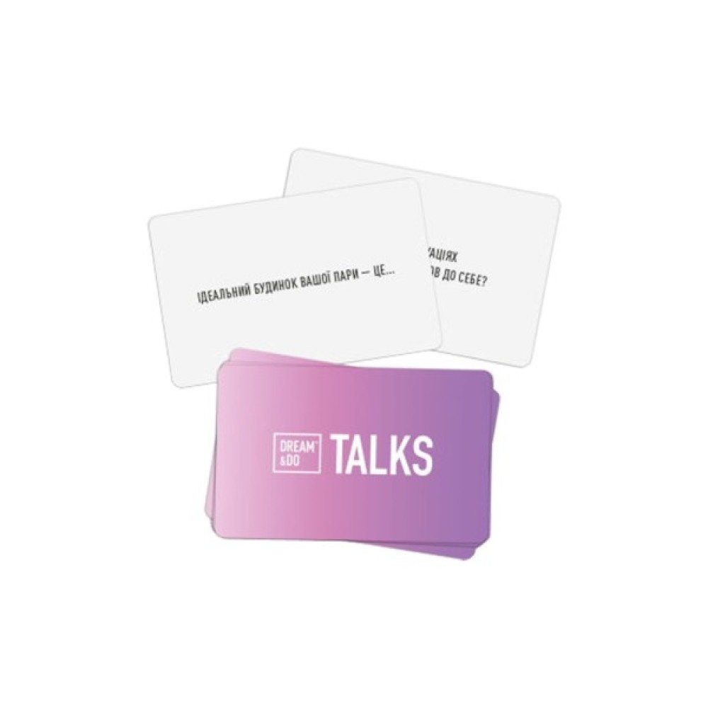 Dream&Do TALKS — колекція розмовних ігор для цікавого й усвідомленого спілкування. Твої історії та спогади, захоплення і мрії, принципи та переконання — буде час на питання про все. Спілкуйся весело та змістовно. Відкладай гаджети і давай скоріше розповідай!