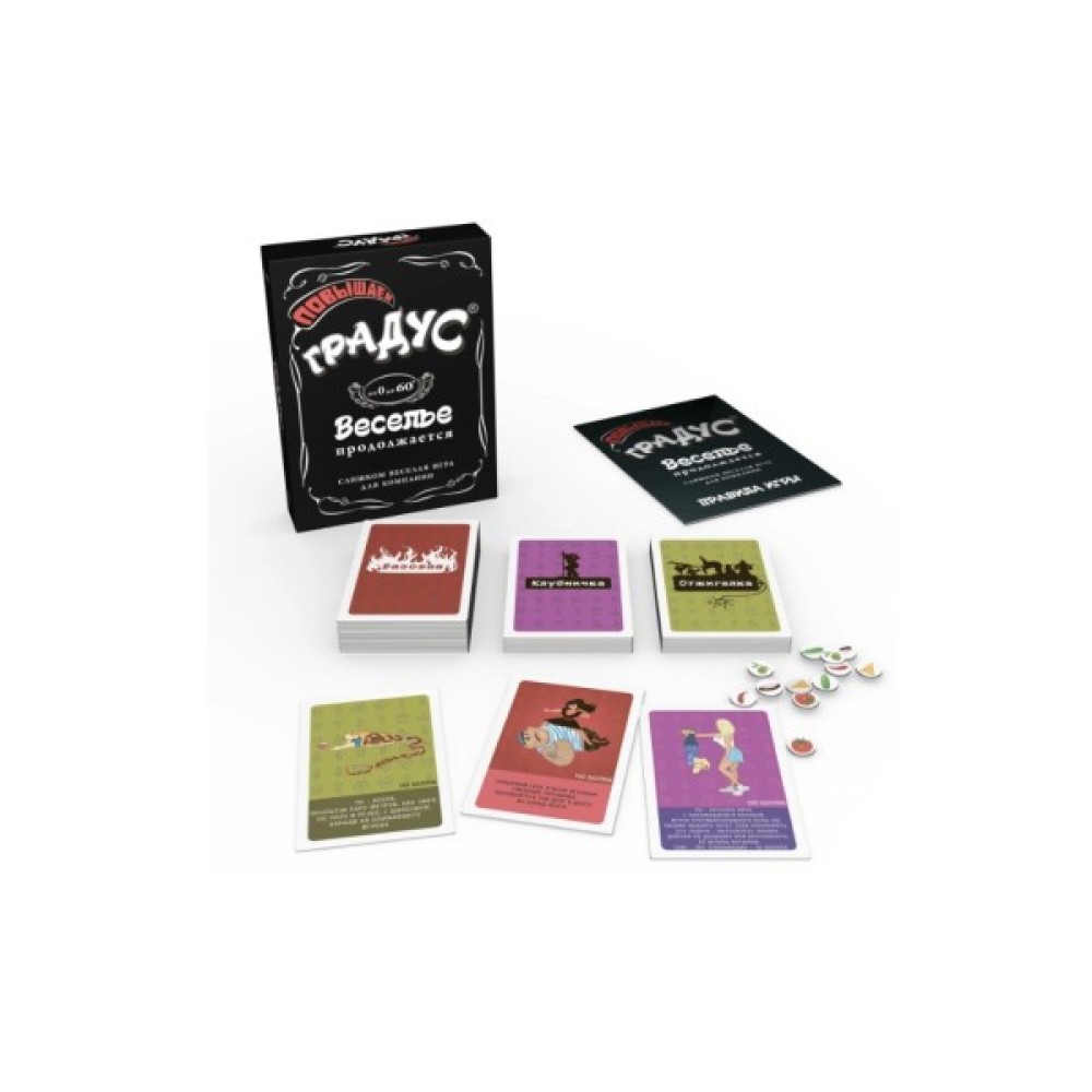 Спеціальний випуск настільної гри «Градус» з трьома новими тематичними колодами - базовою «Алко», прикольною «Віджигалка» та пікантною «Полуничка». «Підвищуємо градус» - самостійна, повноцінна гра, але для більших веселощів радимо змішати її з грою «Градус».
