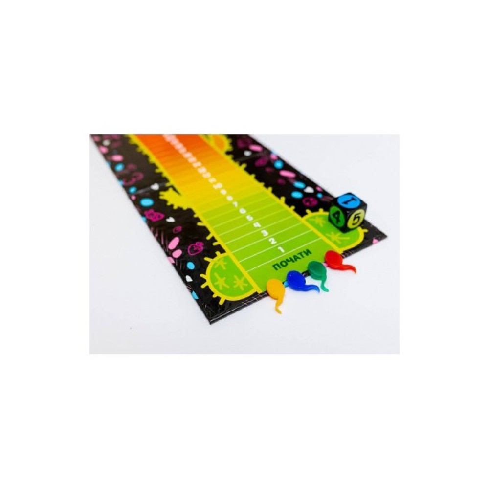 - Помаранчеві карти - "Дії». Дія з цієї карти читається вголос, після чого кубик перекидається до отримання картки із завданням. Якщо ви успішно поєднуєте завдання та вищезгадане "Дія», на вас чекає плюсик у карму та бонусні "е-бали»!