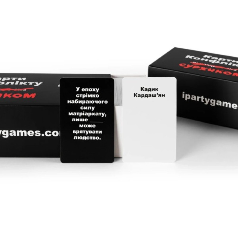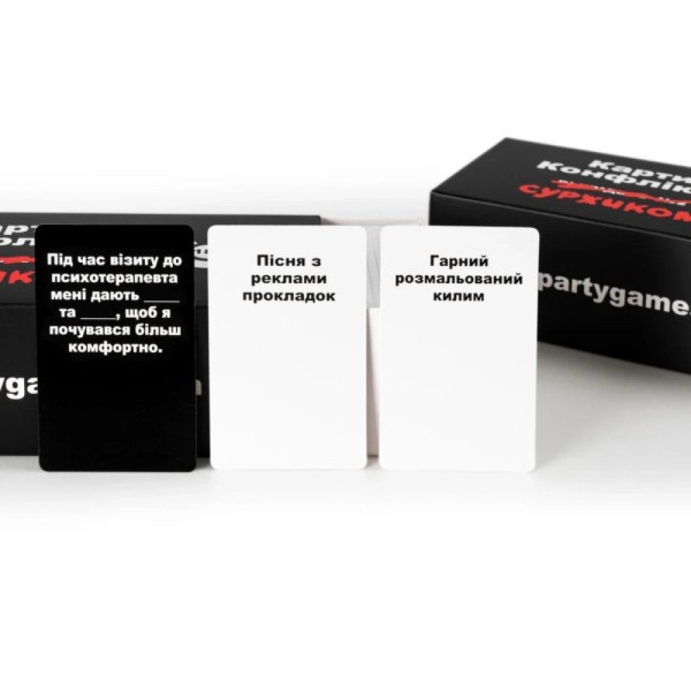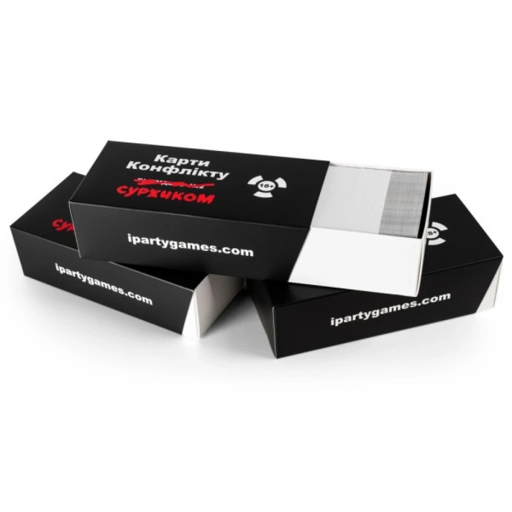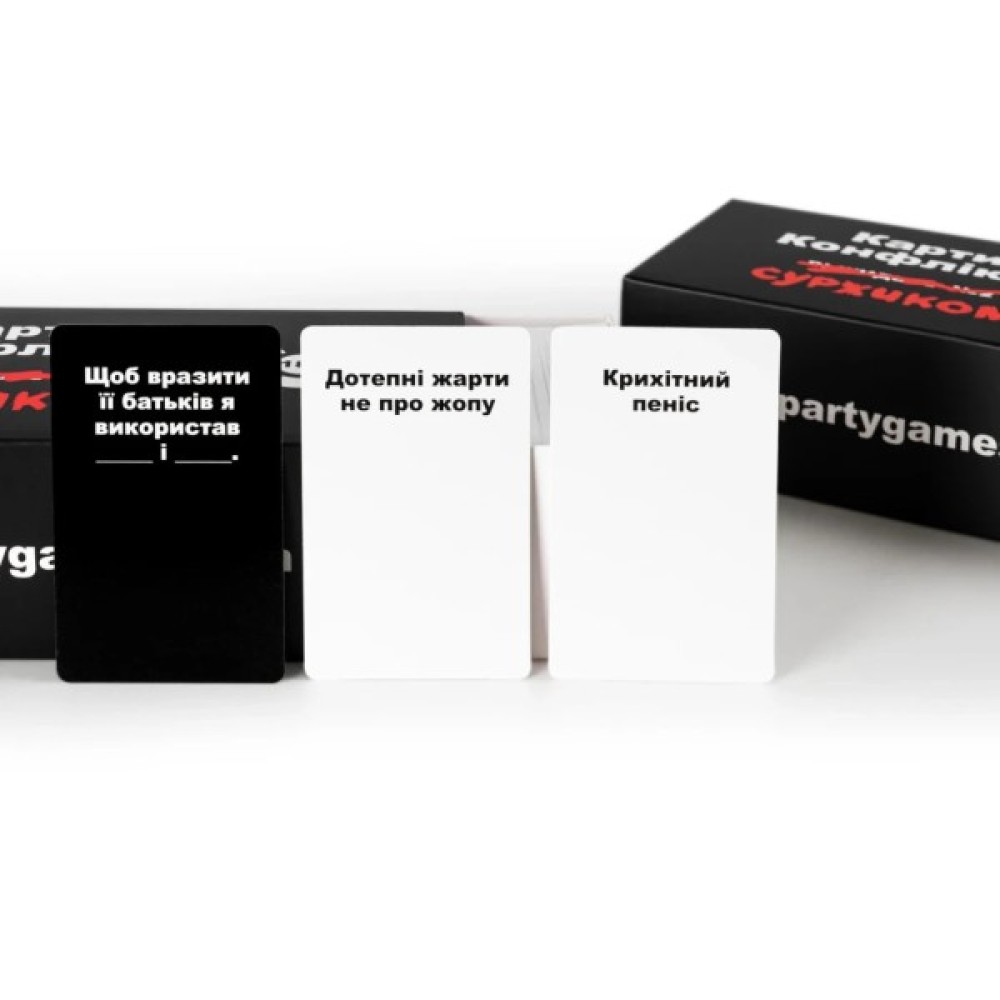 ТЕПЕР СУРЖИКОМЦя версія майже повністю повторює Карти конфлікту. Видання №2, перекладене українською мовою, та містить деякі зміни у питаннях та відповідях. Як відомо, українською все звучить ще смішніше, а коли зустрічаються слівця суржиком, то це може довести вашу компанію до дикого реготу.