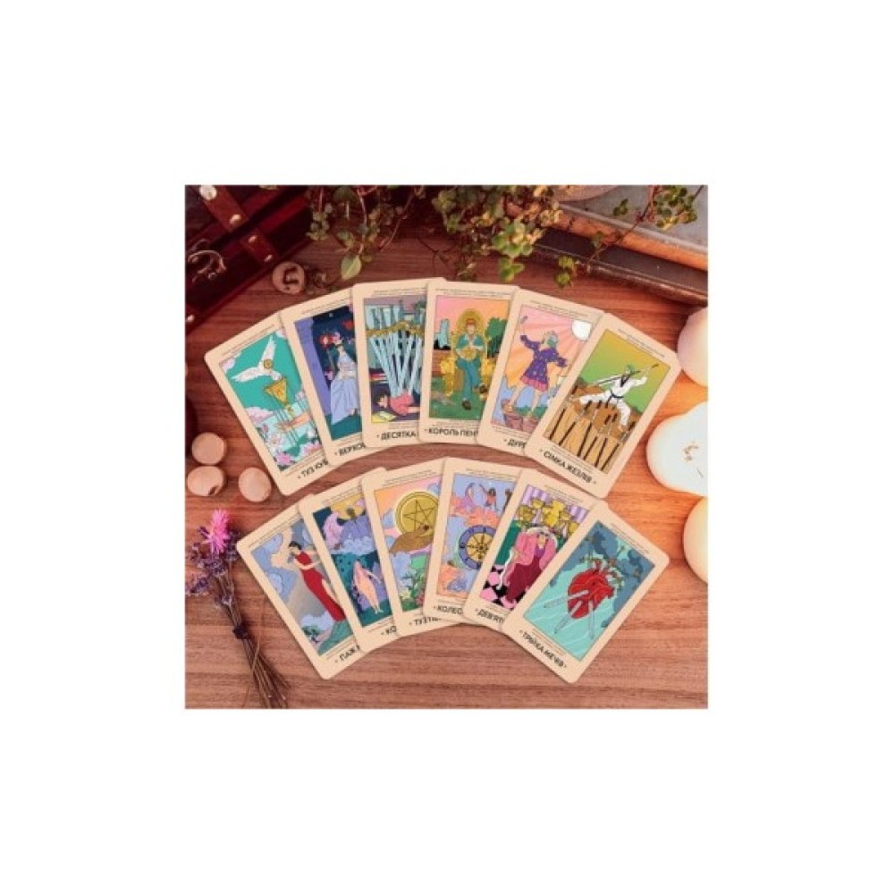Нові картки з матовою ламінацією ілюструють незламність та силу жінки. Класична мудрість карт Таро в новому дизайні розкриває образ незалежної та сміливої леді, її енергетики та сили бути незалежною.