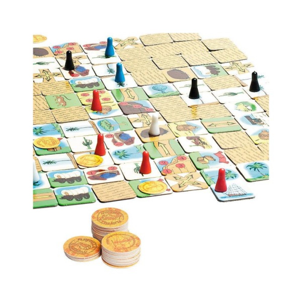 Кожна партія складається з випробувань, які змушують гравців проявляти стратегічні навички. В комплекті ви знайдете 121 картку, 37 ігрових монет та 12 ігрових фішок чотирьох кольорів, що робить гру ще більш інтригуючою та різноманітною. Важливою перевагою є унікальність кожного ходу: гра базується на системі невідомих картонних клітин-квадратів, що кожного разу дарує непередбачувані сюрпризи та нові відкриття.