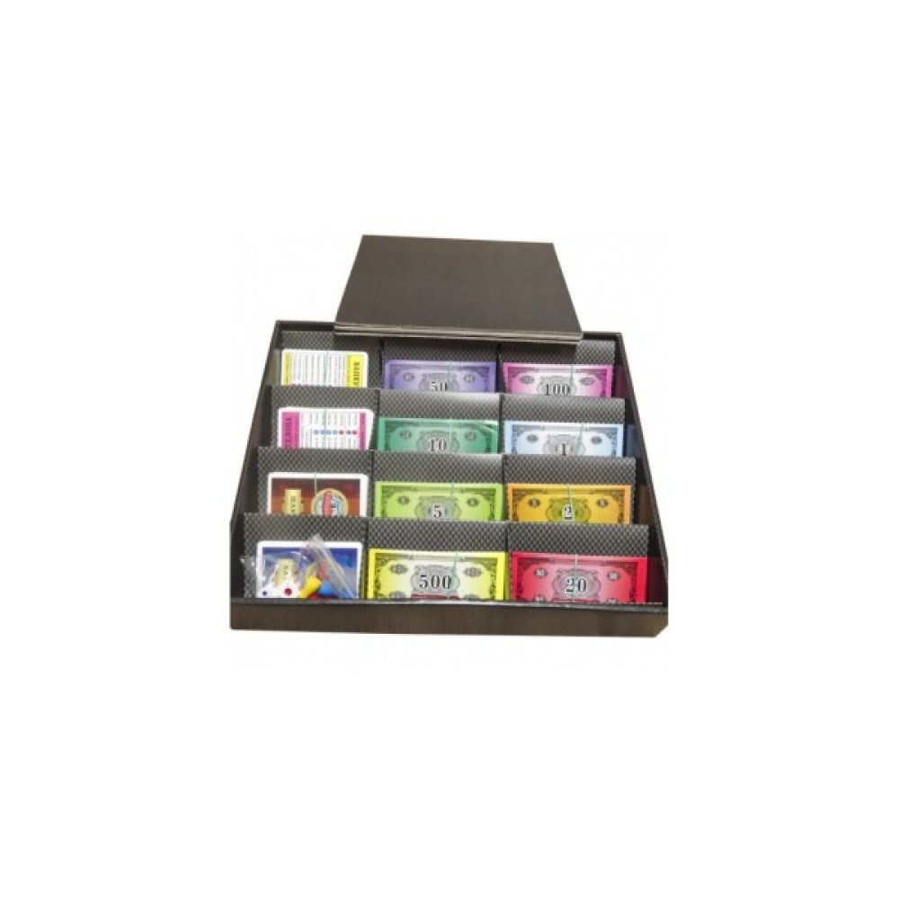 Комплект доповнюють картки «Скарбниця» та «Шанс», які зможуть несподівано змінити ваші плани. Особливу цінність додають спеціальні банкноти «Монополія.UA.Люкс», що надають грі атмосферності й реалістичності.