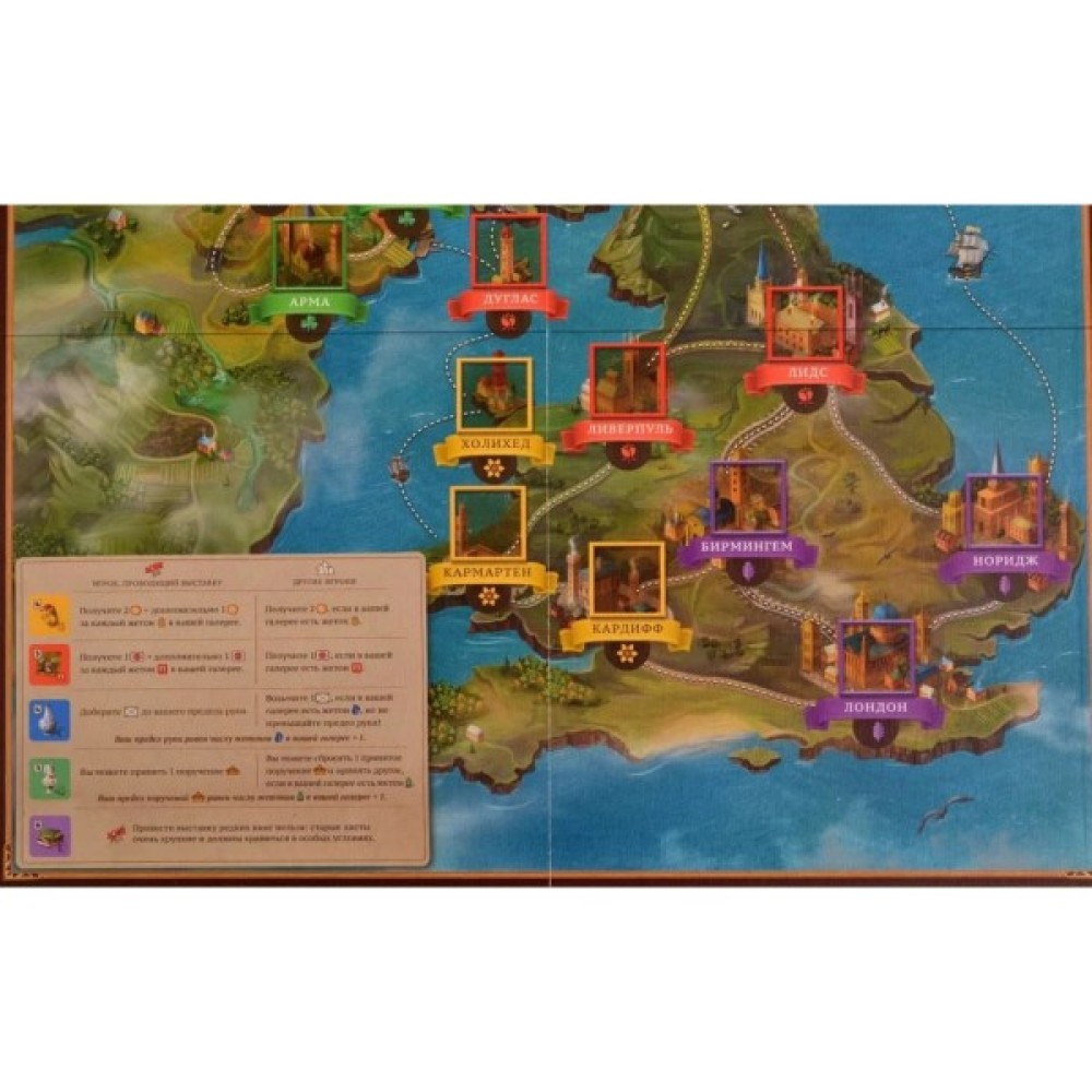 Обираючи персонажа зі специфічними здібностями, ви отримуєте планшет гравця та відправляєтесь у подорож із 10 монетами, королівським квитком й картою послання. Вирушайте до нових країн або залишайтесь у межах Англії, використовуючи можливості двостороннього ігрового поля. Продумане стратегічне мислення та вміння керувати ресурсами дозволять вам виграшно купувати, продавати та наповнювати виставкові зали, що принесе вам перемогу.