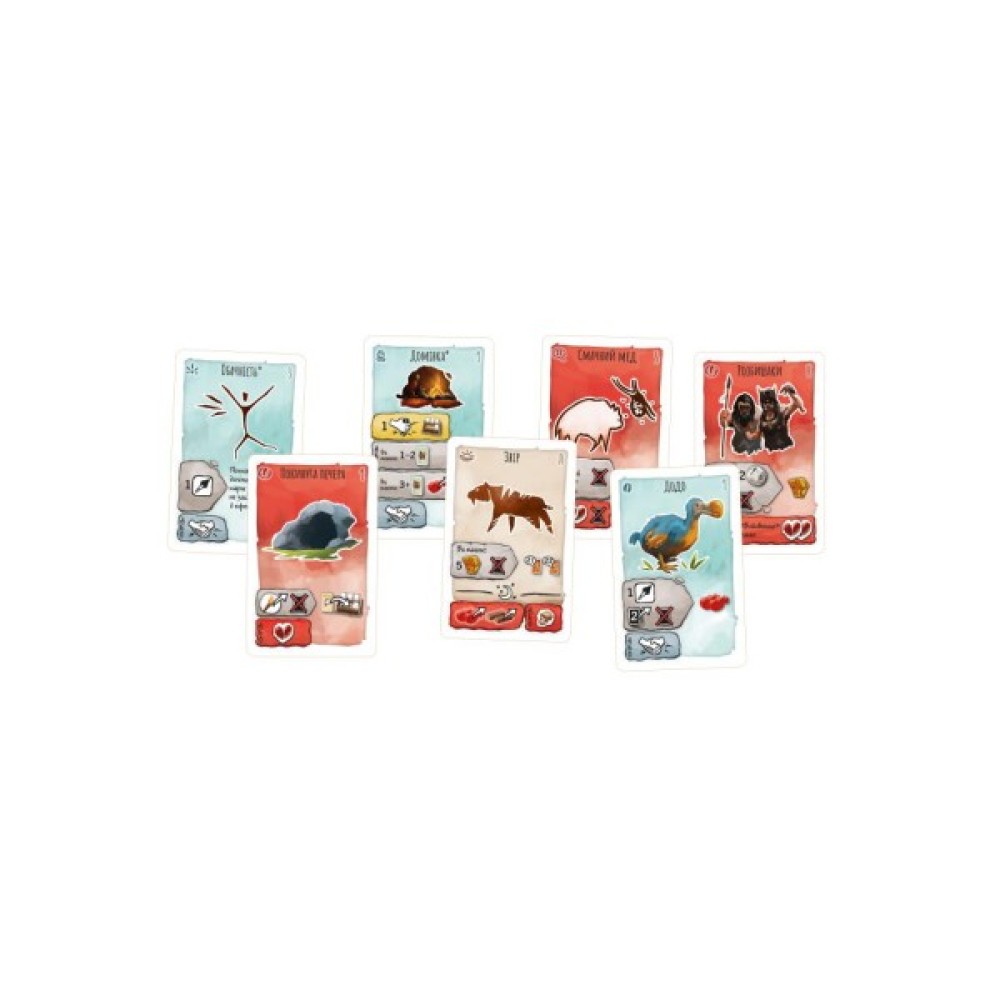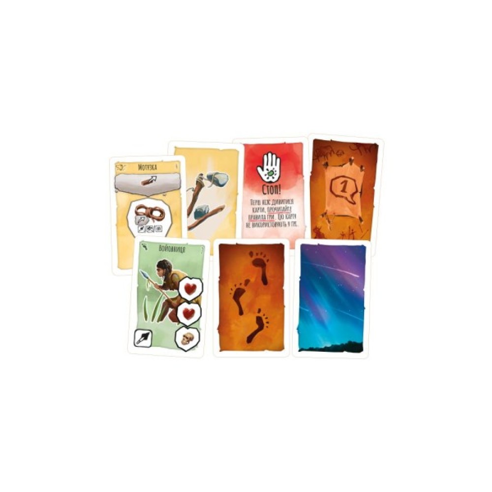 Погрузіться в атмосферу первісного буття разом з сім'єю або друзями, адже грати можна компанією від 1 до 4 гравців, починаючи з 10-річного віку. З 222 унікальними картами, 98 жетонами та безліччю інших компонентів, гра гарантує незабутні враження. Кожна партія розгортається в кілька раундів, під час яких вам доведеться досліджувати дику природу, створювати нові знаряддя праці та захищатися від небезпек.