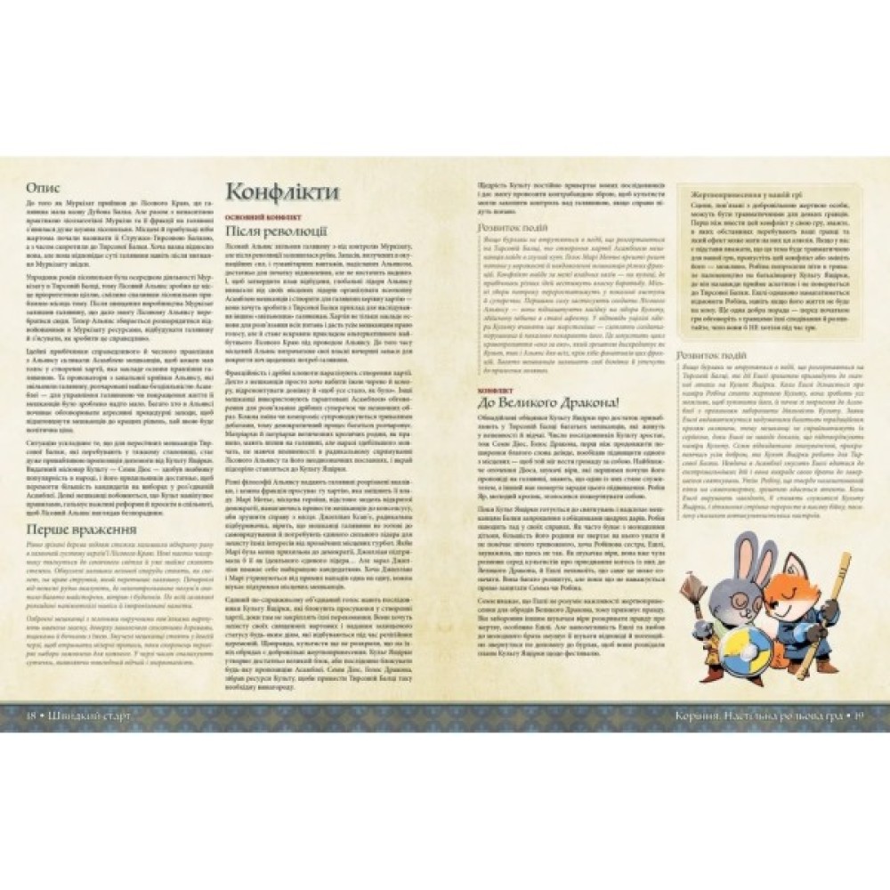 Приєднуйтесь до яскравого світу Лісового Краю, де на вас чекають небезпечні місії та незабутні емоції. Ця настільна гра подарує вам не лише радість, але й новий погляд на мистецтво рольових ігор. Відкрийте для себе світ, котрий заворожує та підкорює з першого моменту.