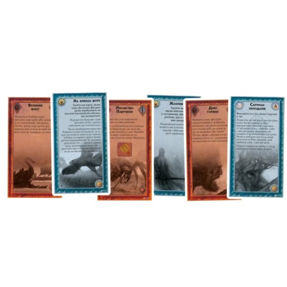 Гра збагачує ваш стратегічний арсенал завдяки спеціальним кубикам фракцій — зеленому для Вільних Народів та помаранчевому для Тіні. Крім того, 48 ретельно виконаних пластикових фігурок, 62 карти з захопливими подіями та детальні пам'ятки доповнюють комплектацію. Унікальні механіки відкривають нові можливості для маневрів та додаткових сюжетних поворотів.