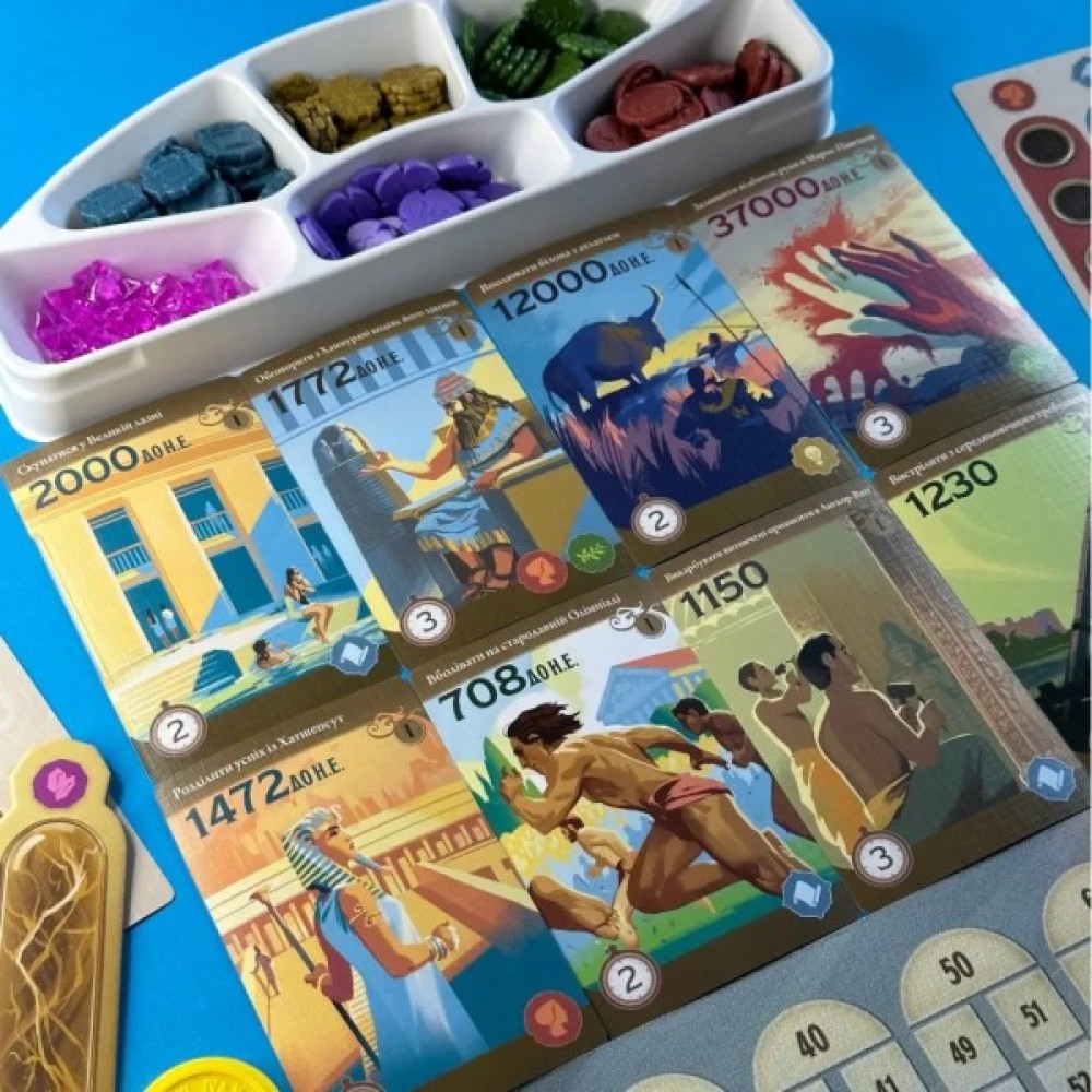 Відкрийте мальовничі ілюстрації на картах, які зображають дух реальних подій і надають цікаві факти про минуле. Змагайтеся за переможні очки, керуючи часом та створюючи хронологічні ряди подій. Цей процес розвиває стратегічне мислення та увагу до деталей.