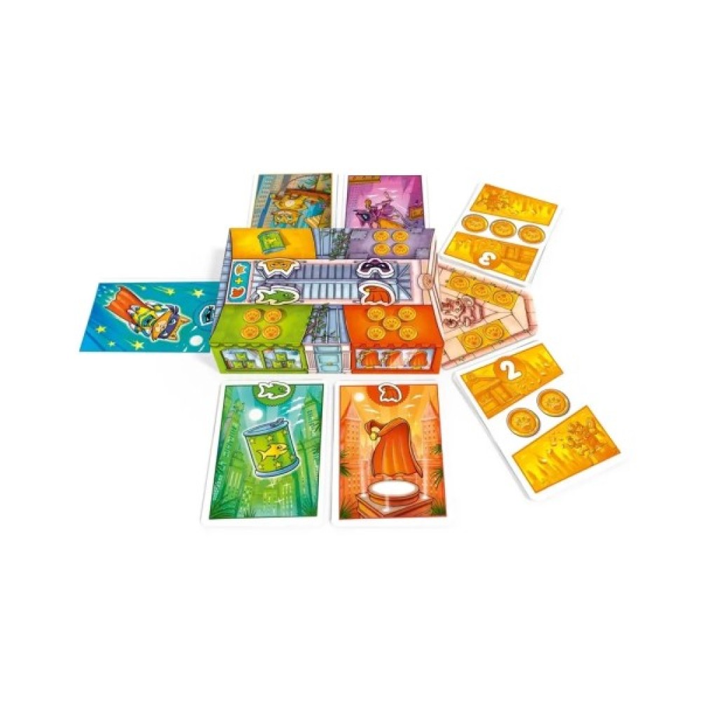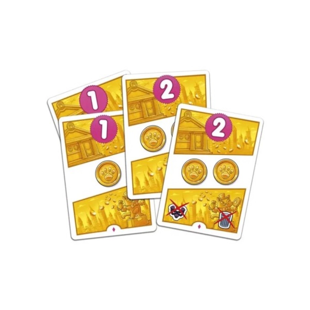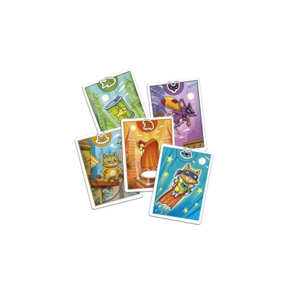 Гра вражає своєю якісною комплектацією, що складається з 20 карток з монетами, 4 карт мишей, 8 карт котячих смакот, 8 карт котів, 8 карт плащів і надихаючої карти Супермяу. Завдяки тій, що гра доступна українською мовою, вона стане ще привабливішою для маленьких шанувальників цікавих історій.