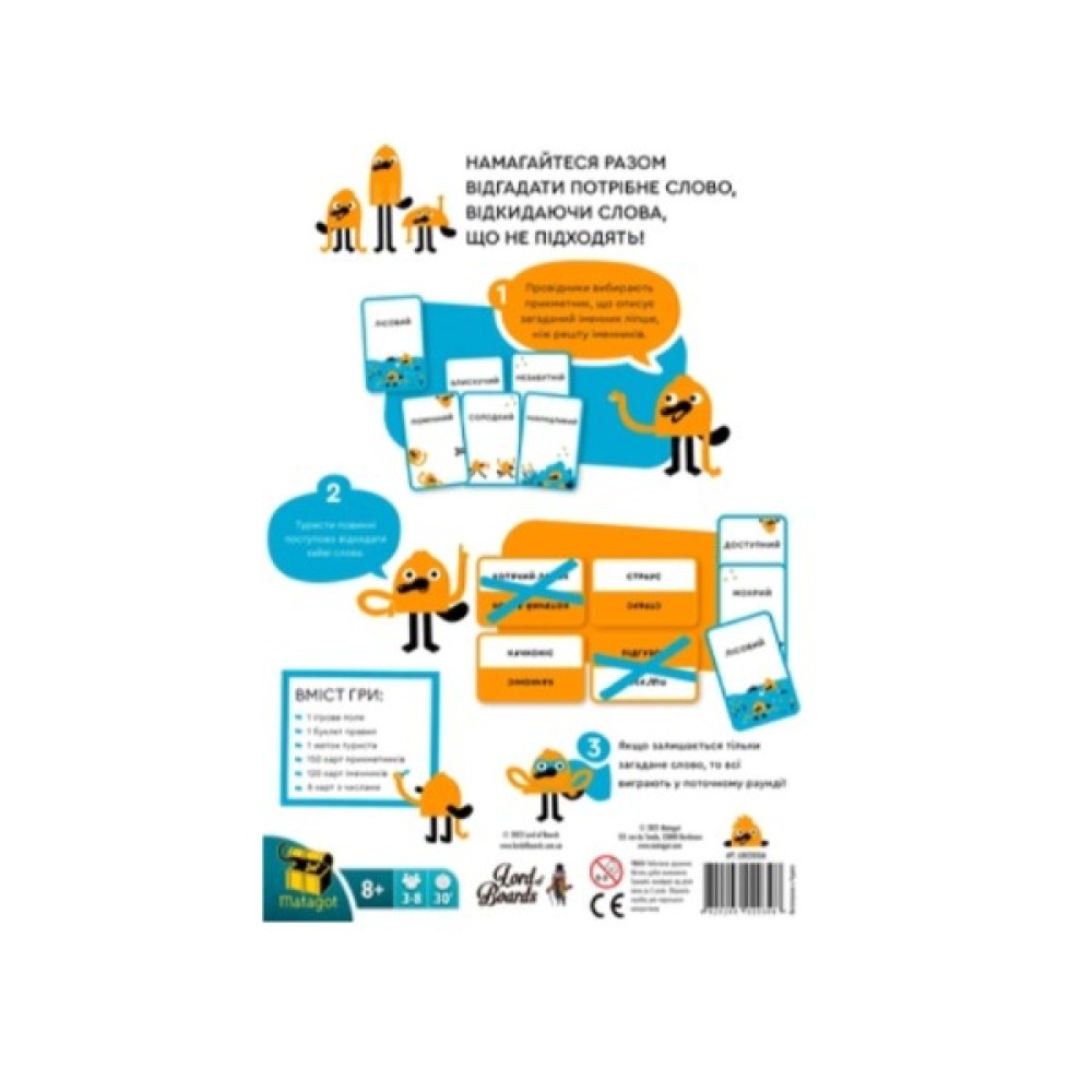 Гра починається з розташуванням ігрового поля та вісьмома картками з іменниками, які стануть об'єктами для відгадування. Кожен раунд дарує можливість посилити інтуїцію та кмітливість, адже один з гравців стає Дослідником, завдання якого — вгадати слово за допомогою підказок, що надають Провідники. Унікальна колода карт прикметників забезпечує різносторонність підказок, які, хоча й можуть здатися складними, завжди пропонують несподівані рішення.
