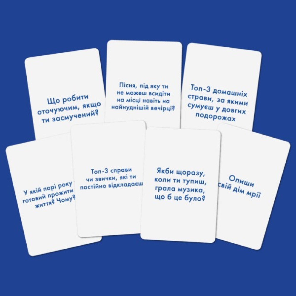Ця карткова гра має розважальний, розвивальний та навчальний характер, що робить її ідеальною для будь-якої компанії - будь то підлітки, вся родина, або вечірка із друзями. Доступна для гравців від 16 років, вона створена для 2-7+ учасників, що робить її ідеальною для різних ситуацій та настроїв.