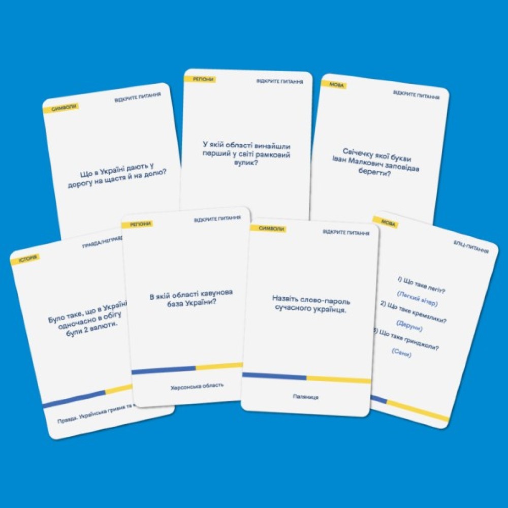 В комплекті ви знайдете 180 карток із запитаннями, розділеними на категорії: культура, історія, мова та регіони. Особливої атмосфери додадуть легендарні вуса Кобзаря, які можна надягати для антуражу! Гра розрахована на гравців від 12 років, що робить її ідеальною для всієї родини.