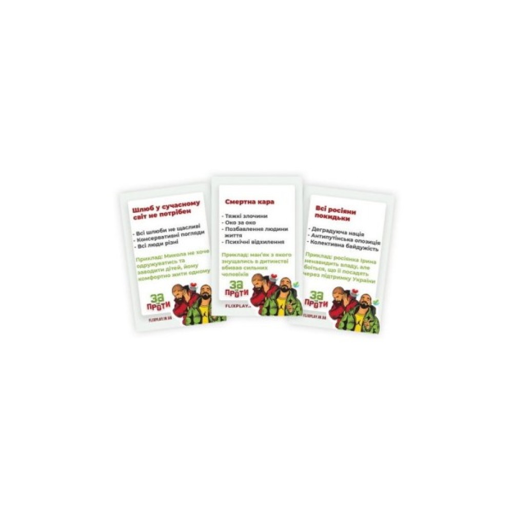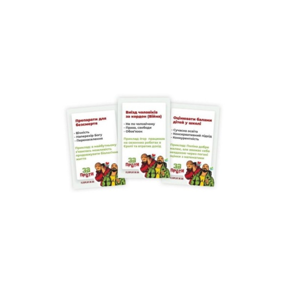 Гра пропонує теми, що викликають обговорення, такі як шлюб у сучасному світі чи розлучення сімей з дітьми. Важливо підготуватися висловлювати думки, що можуть не співпадати з вашими власними, і інтелігентно сперечатися з друзями, щоб отримати переможні очки. Граючи у "За чи Проти?", ви не лише отримуєте задоволення, а й розвиваєте здатність аргументувати та швидко думати.