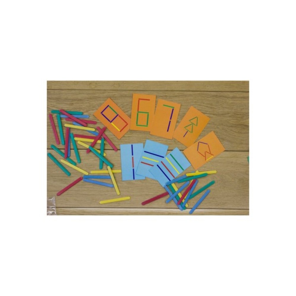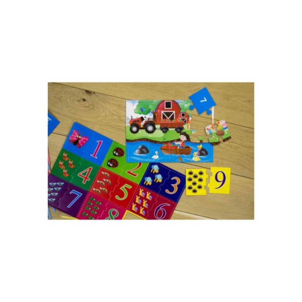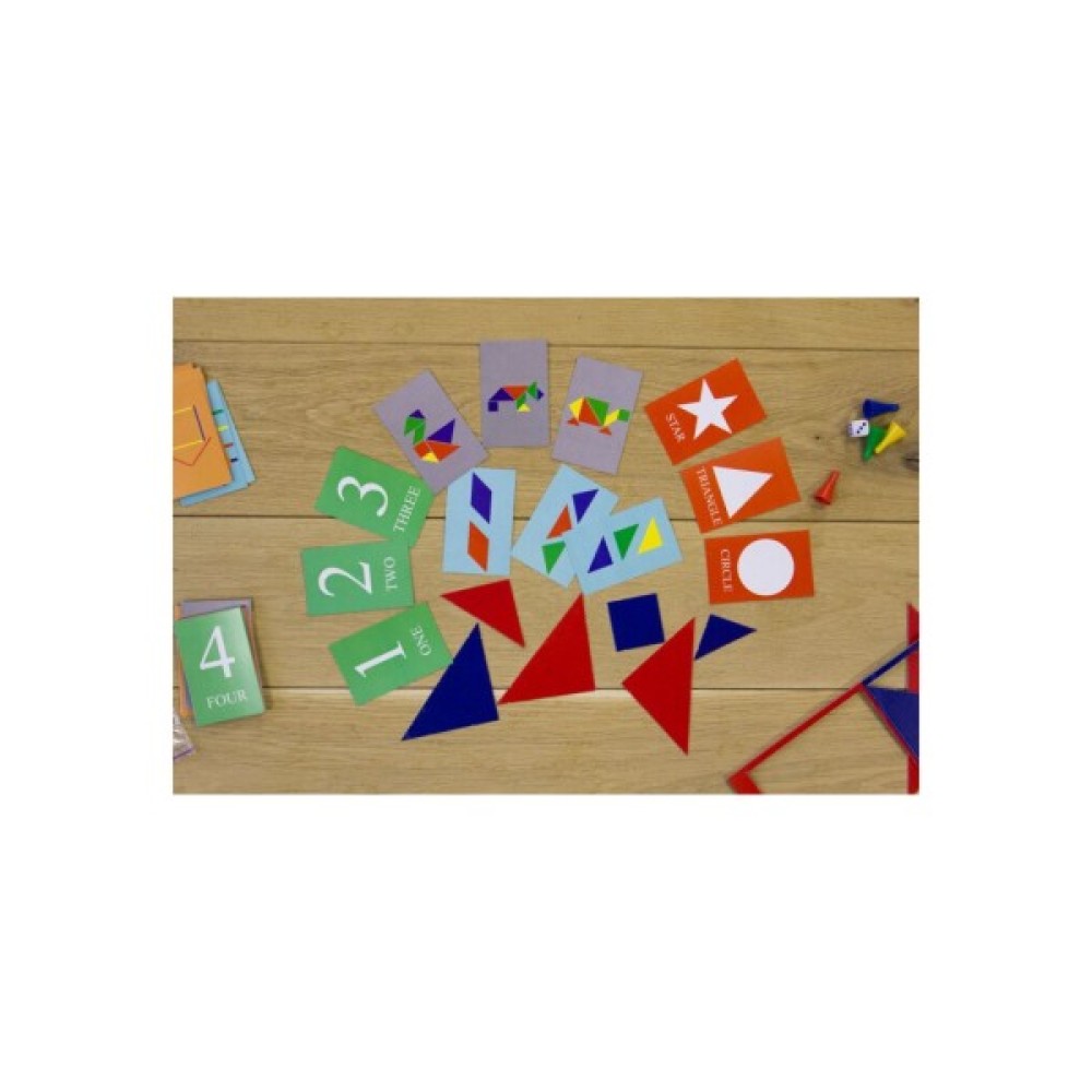 Комплектація 20 пазлів половинок; 55 карток; 30 рахункових паличок; 12 пазлів з прикладами; 28 геометрічних фігур; настольну гру з фішками; інструкцію з іграми та головоломками