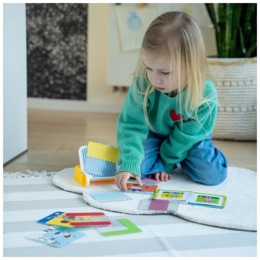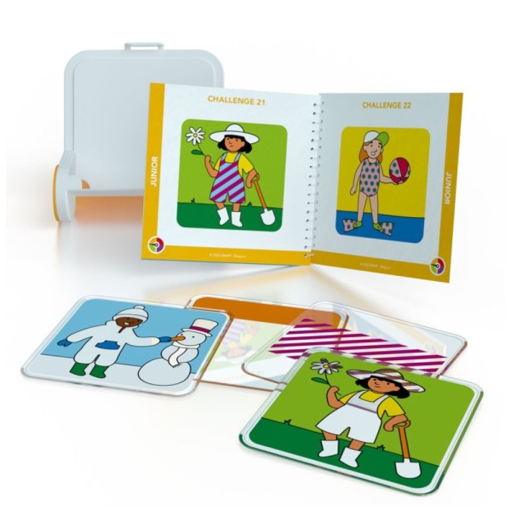 Основою гри є якісна ігрова дошка, яка також слугує зручною коробкою для зберігання компонентів. До комплекту входять 8 прозорих пазлів із візерунками та кольоровими областями та 4 прозорі пазли з фігурками, завдяки яким діти здобувають навички розпізнавання кольорів, форм, послідовності та орієнтації. Буклет із 80 завданнями та рішеннями дозволить їм заглибитися в світ логічних задач, стимулюючи концентрацію, планування та візуальне сприйняття.