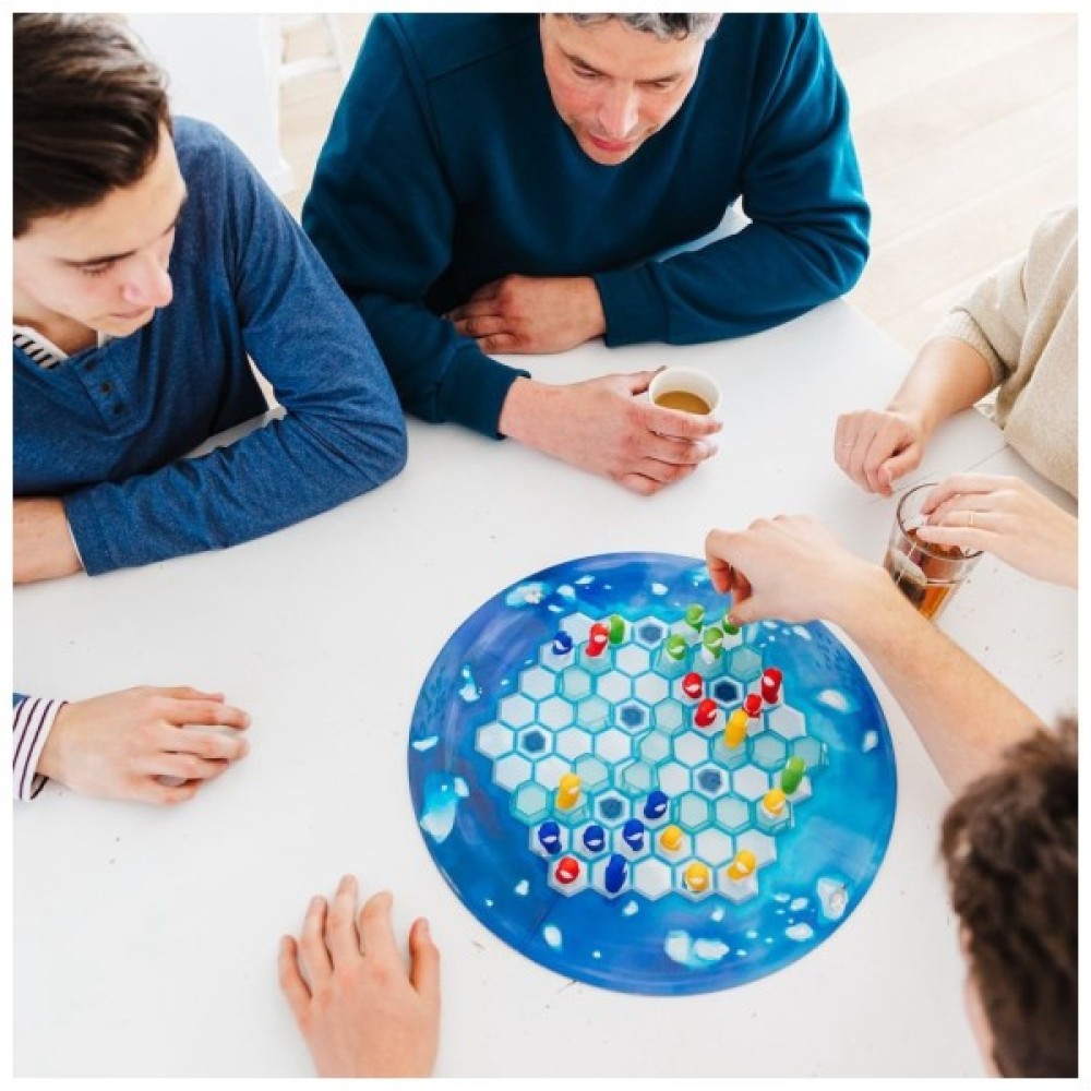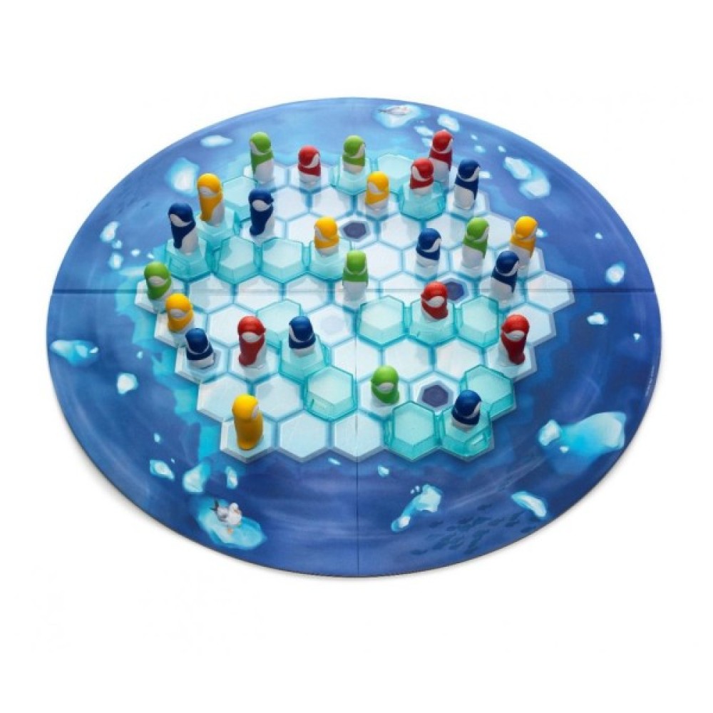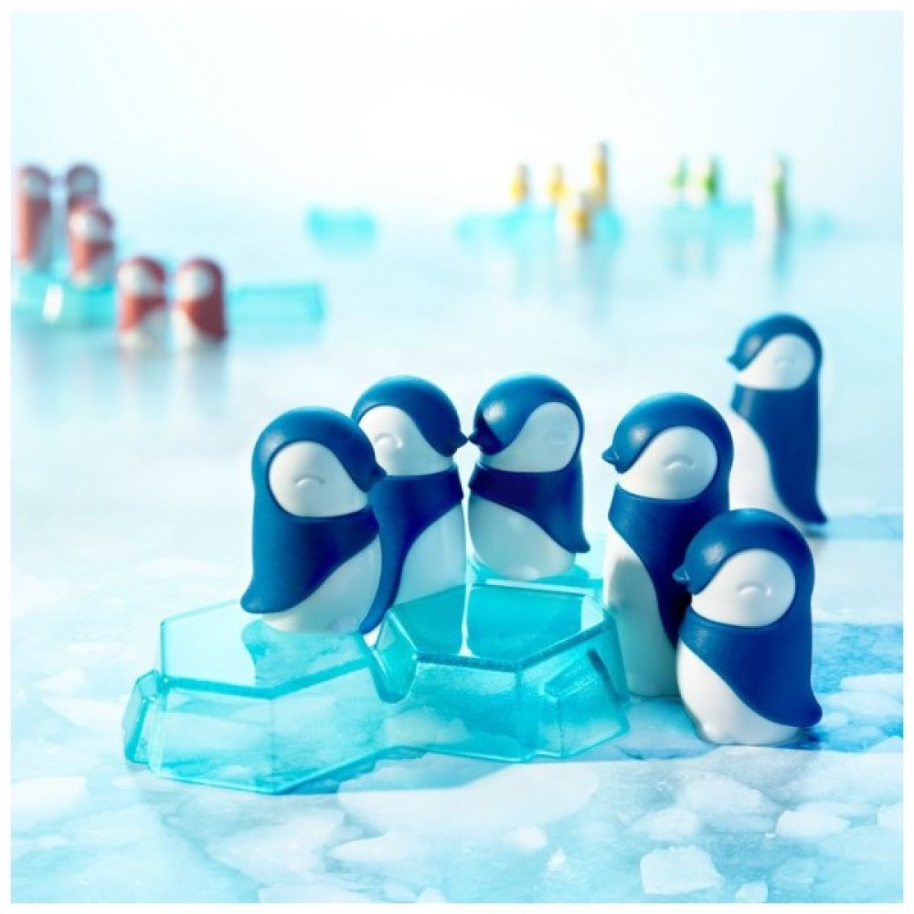 У комплекті ви знайдете ігрову дошку, на якій розташовується складний ландшафт з крижаних блоків — 4 прямих та 2 зігнутих. Чотири родини пінгвінів, у кожній з яких є 3 великих та 3 маленьких пінгвіни, потребують вашої допомоги, щоб об'єднатися. Боротьба за збирання разом усіх членів своєї сім'ї стає випробуванням на кмітливість і швидкість.
