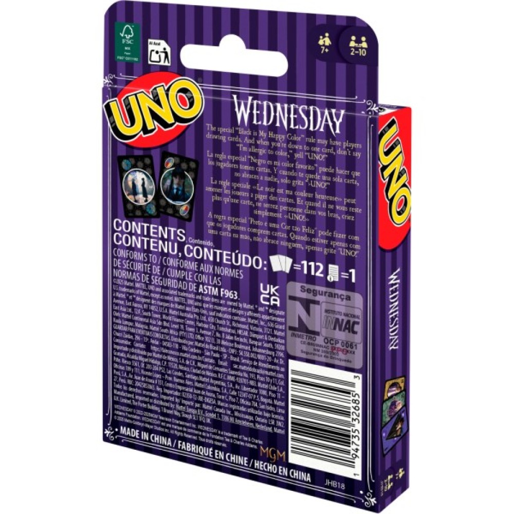 У UNO Wednesday, як і в класичній грі, гравці по черзі намагаються підібрати карти за кольором або числом, прагнучи першими позбутися всіх своїх карт. Головна родзинка цієї версії — спеціальне правило «Шалений чорний - мій щасливий колір», яке додає ще більше азарту та непередбачуваності в гру. Ця карта створена спеціально для версії "Венздей", і лише вона може змінити поточний хід подій.