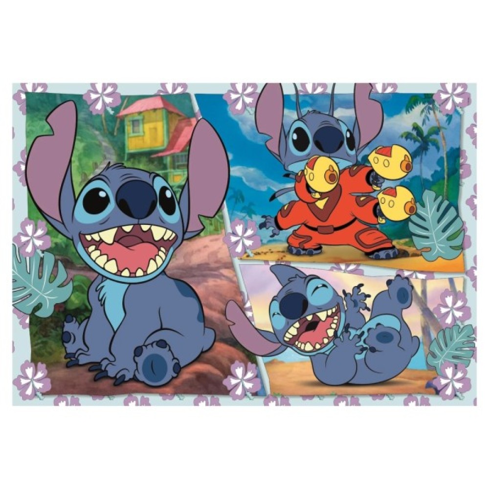 Пазл Clementoni Stitch серії MAXI (104 елементи) із зображенням улюблених персонажів мультсеріалу захопить малюка – складання стане веселим заняттям для всієї родини.