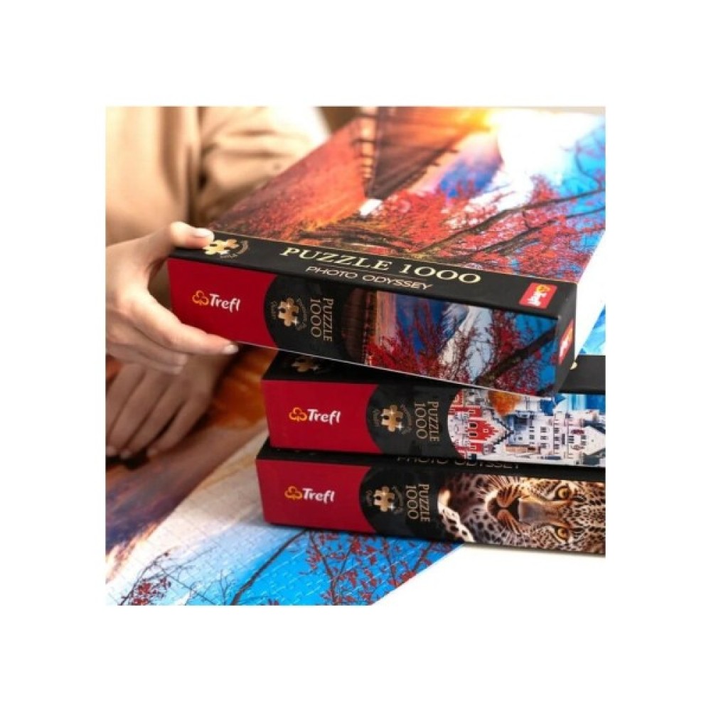 Пазли на 1000 елементів. У складеному вигляді розмір картинки складає 68х48 див. Висока якість, насиченість кольорів і безпеку при складанні пазлів забезпечує спеціальний каландрировані картон, який відбиває світло і покритий екологічними фарбами.