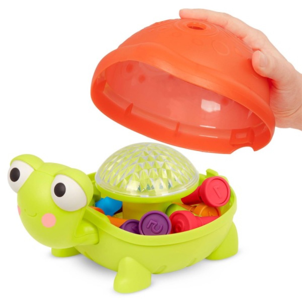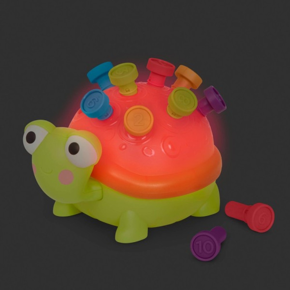 - Черепашка світиться та видає веселий звук кожного разу, коли встановлюється кілочок!