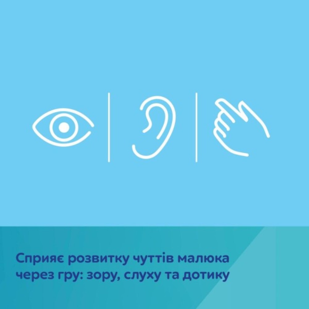 • Книжечка має багато сенсорних елементів, які заохочують малюка до гри.