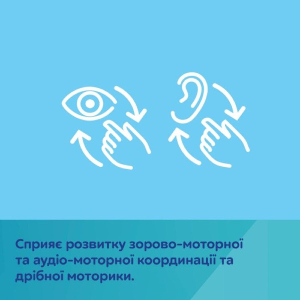 • Стимулює дитячу допитливість і допомагає тренувати навички дрібної моторики.