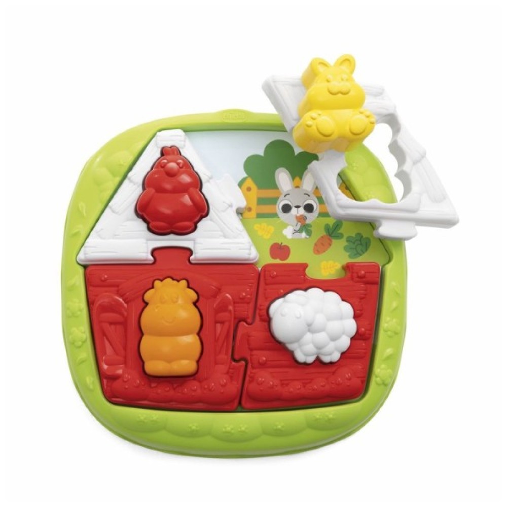 "Фермерський будиночок" – це розвиваюча іграшка 2 в 1, розроблена спільно з ANPE (Національною асоціацією педагогів Італії) та Дослідницьким центром Chicco. Розвиває зорову та моторну координацію, логічне мислення та уважність.