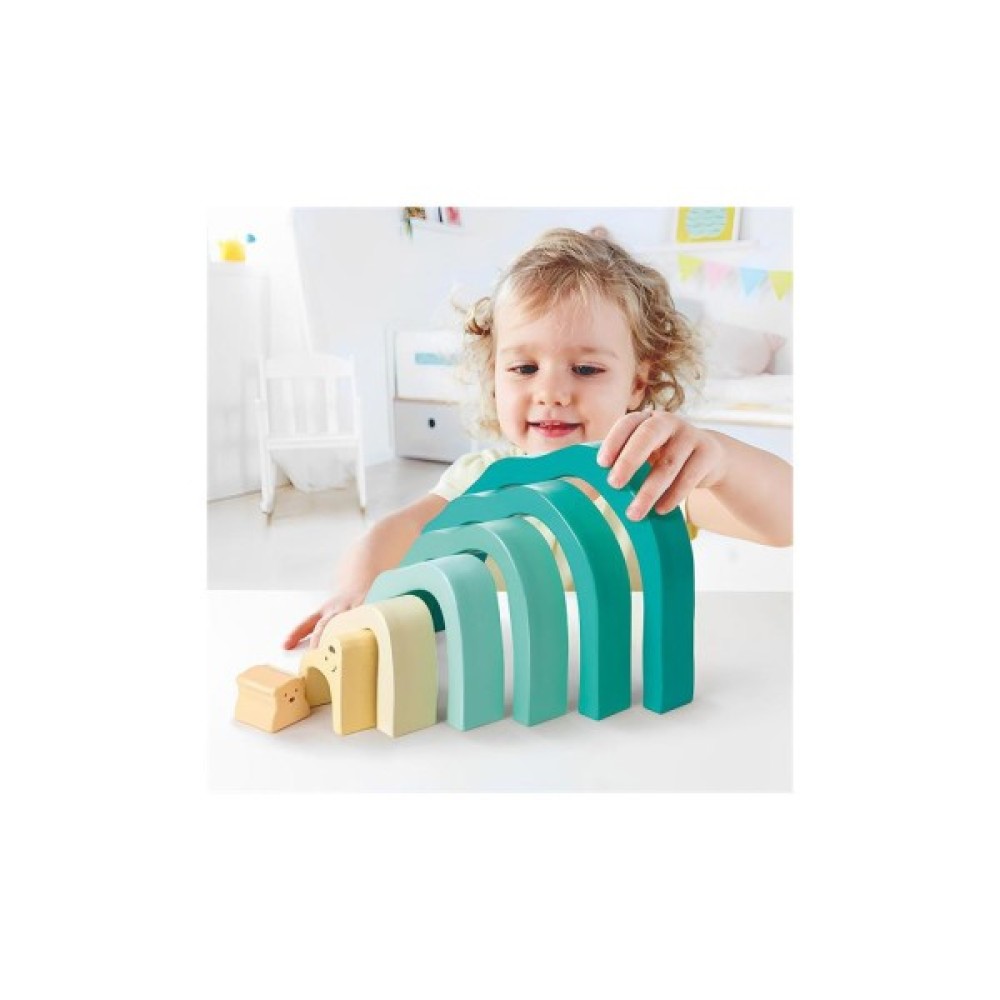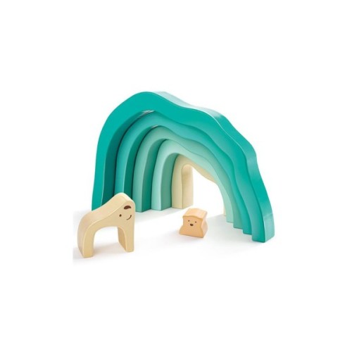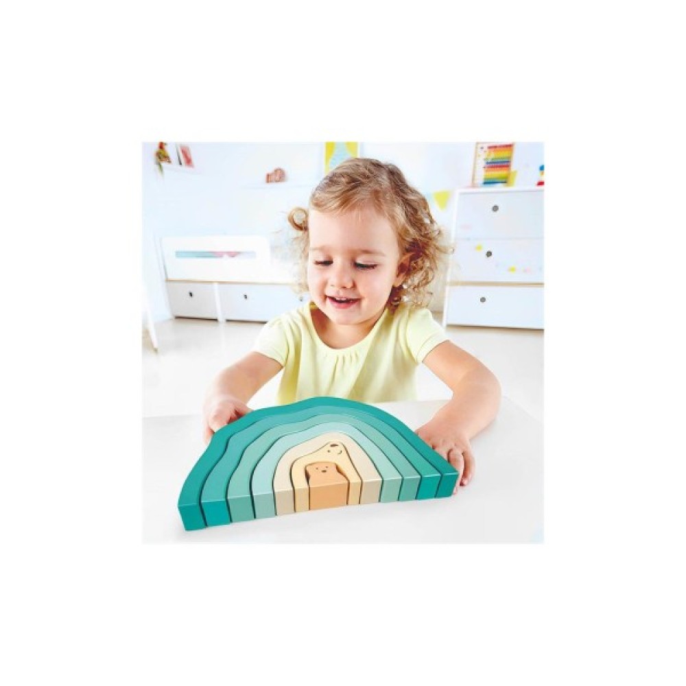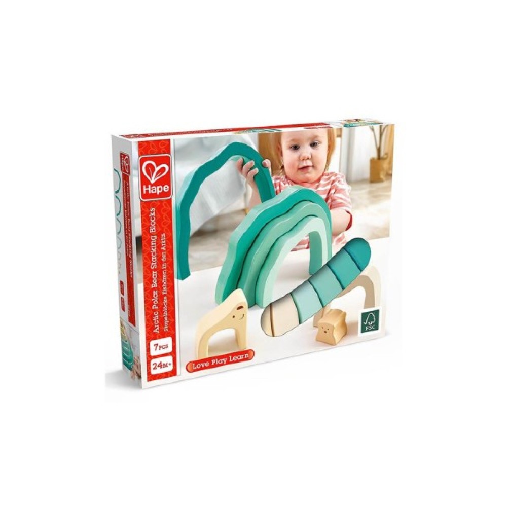 Дерев'яна пірамідка Hape Ведмедик містить 7 блоків неправильної форми. Створюйте дивовижні арктичні пейзажі та вигадуйте історії серед айсбергів!