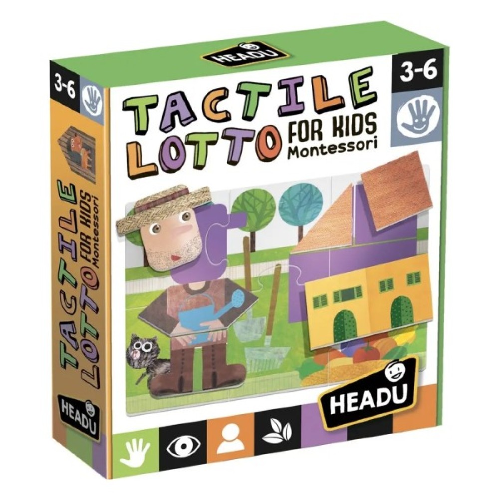 Ранній розвиток дитини – це не мода, чи тренд – це необхідність. Кожна дитина при народженні має свою індивідуальну комбінацію потенційних біологічних здібностей: визначення цих характеристик у ранньому віці дозволяє батькам і педагогам використовувати найбільш підходящі «формати» (канали) передачі здібностей. І ці методики, засновані на повазі до дитини, її нахилів та здібностей, допоможуть виростити вільну, гармонійну та всебічно розвинену людину. Метод та продукція Headu стимулює інтелект та природні таланти дітей за допомогою ігор та за допомогою цікавих навчальних матеріалів, зібраних за компетенціями, щоб природно, ненав'язливо та без примусу відкрити в дитині здатність до перманентного навчання, а також розвивати бажані навички у потрібній мірі. Тактильна гра Монтессорі Форми та контури Опис: гра, яка відточує відчуття дотику, координацію руки-очі та дарує задоволення від гри у лото. Спостерігайте за контуром, вийміть фігуру з мішка, торкніться та оберіть правильну форму, щоб завершити свою фермерську загадку. Набуті вміння: Розвиток розпізнавання торкання та дрібної спритності. Вивчення простих геометричних фігур та форм. Ознайомлення з фермою. 6 лото-карт для складання, 36 фігур, 1 бавовняний мішок. Мета гри: спостерігати, торкатися, розпізнавати та вибирати правильну форму! Орієнтовний час гри: 20 хвилин.