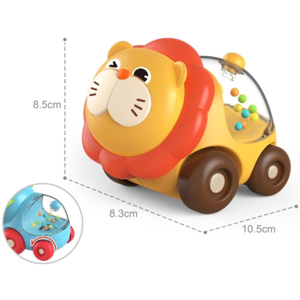 Пластикова машинка у вигляді забавного звірятка Левеня буде цікавим подарунком малюкові.